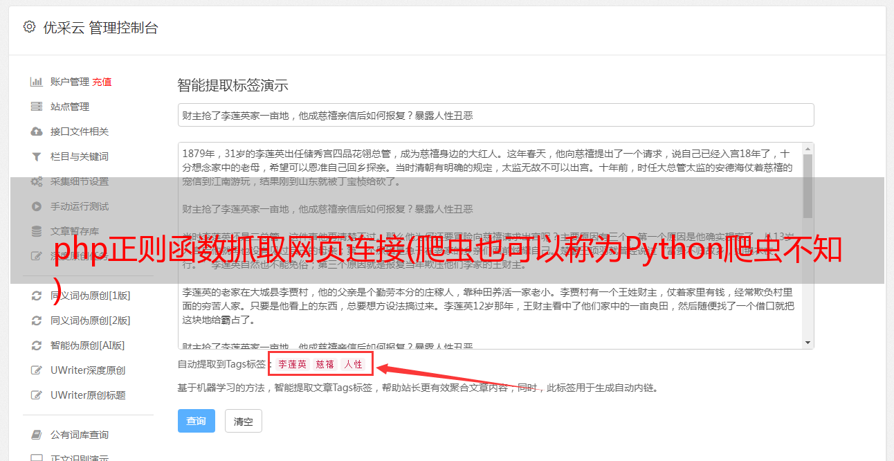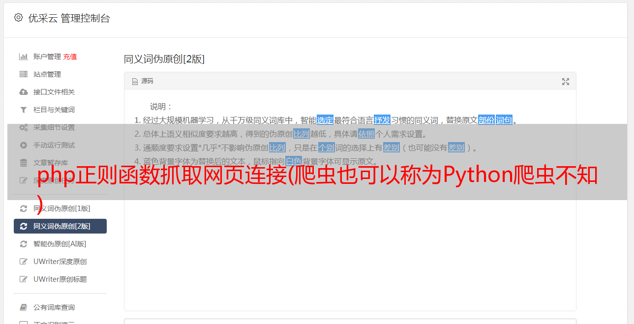 优采云 发布时间: 2021-11-09 15:01php正则函数抓取网页连接(爬虫也可以称为Python爬虫不知