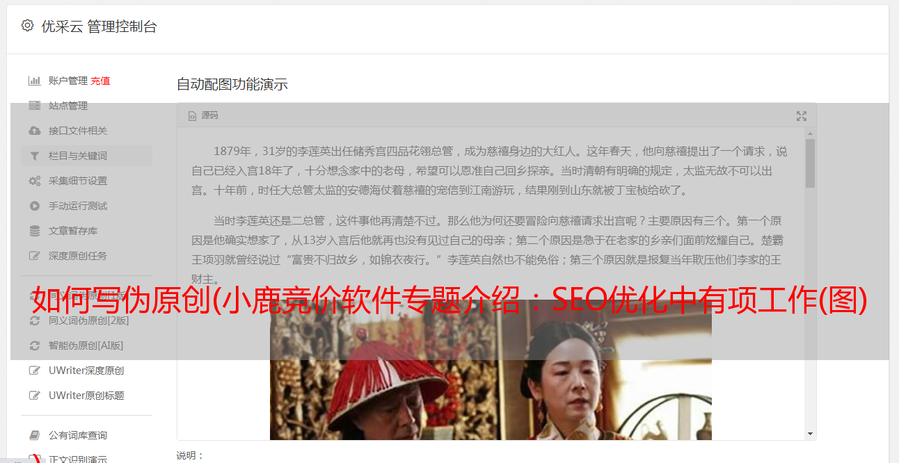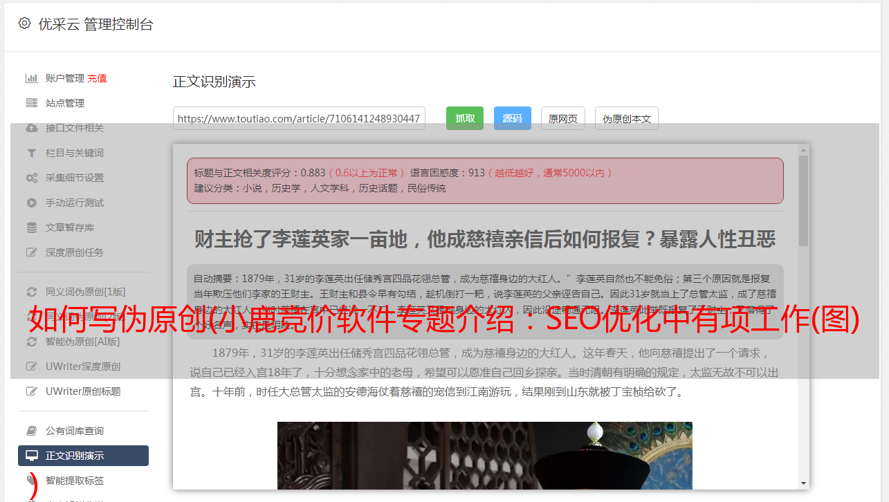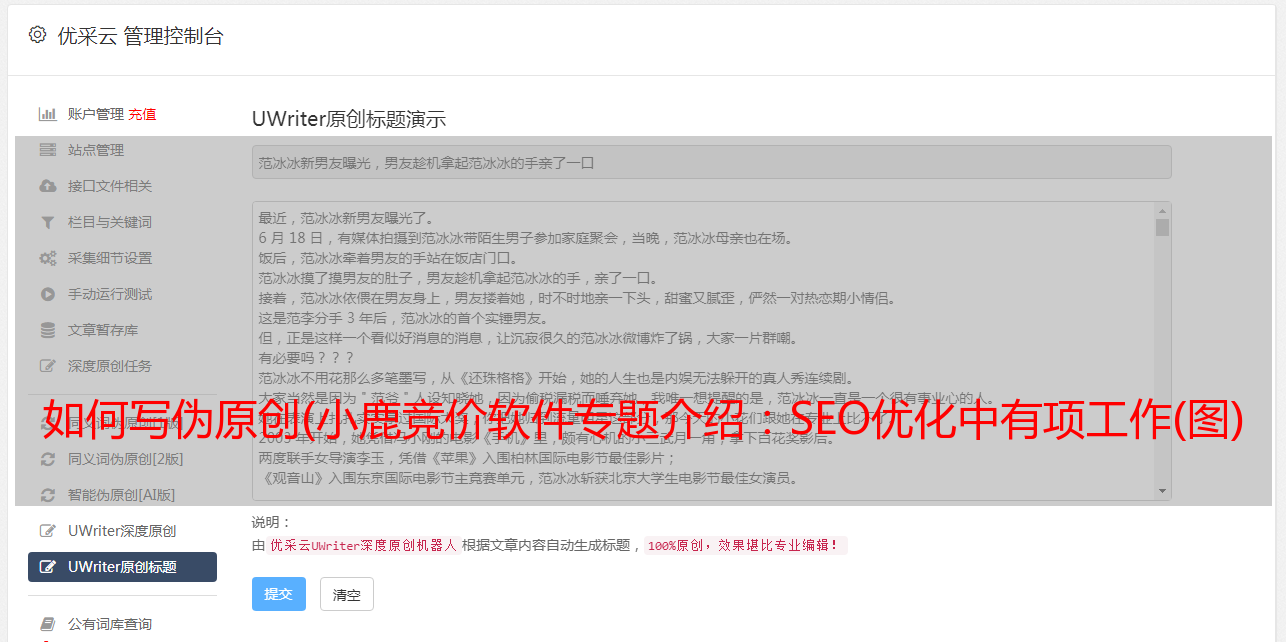 优采云 发布时间: 2021-11-09 20:12如何写伪原创(小鹿竞价软件专题介绍:SEO优化中有项工作(图)