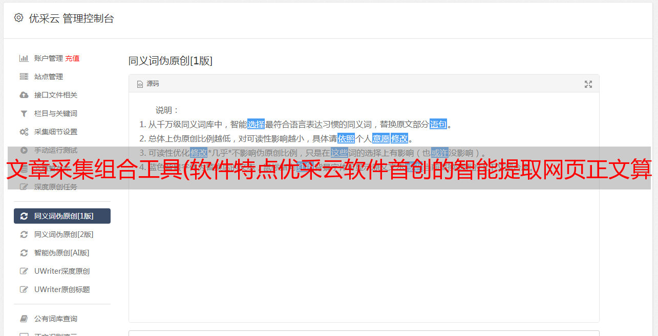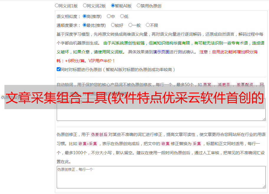 文章采集组合工具(软件特点优采云软件首创的智能提取网页正文算法(组图))
