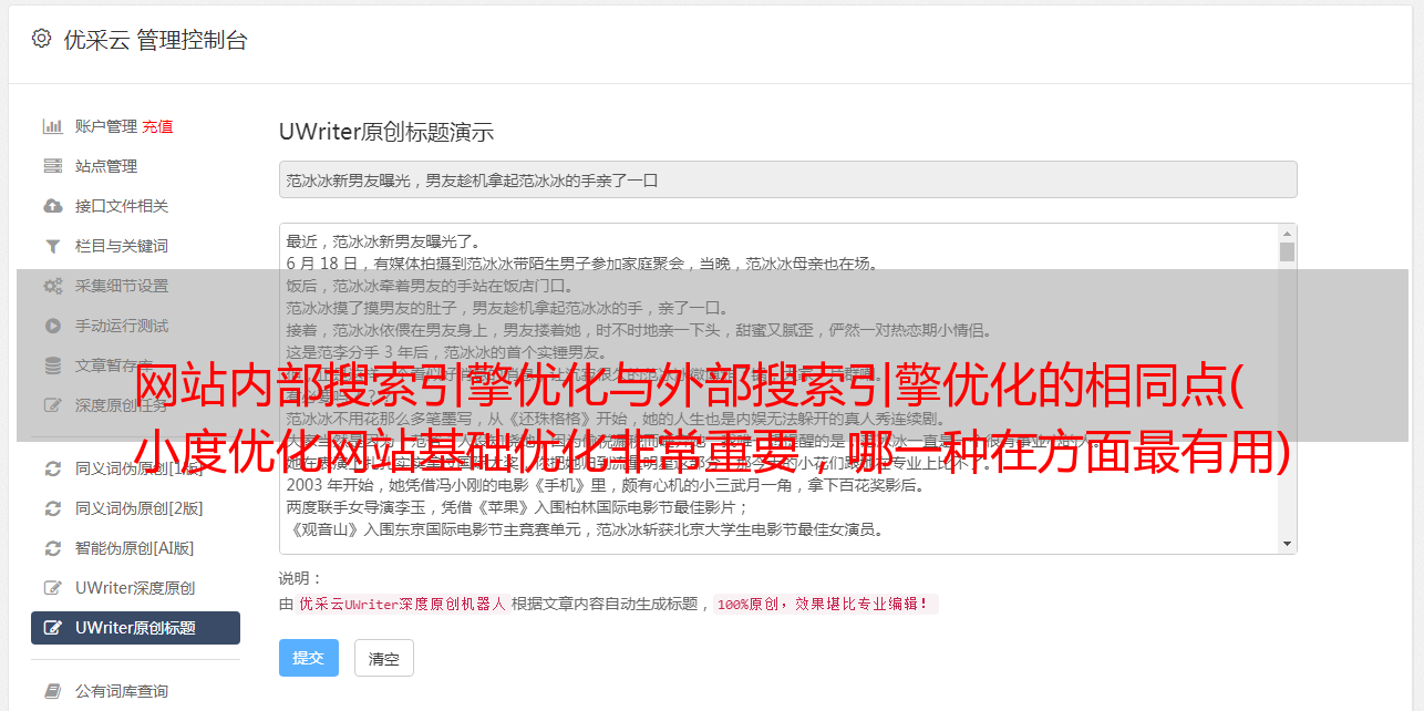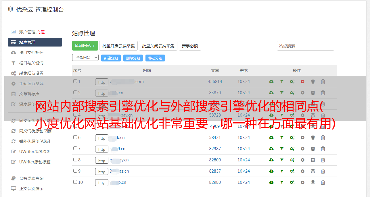 优采云 发布时间: 2021-11-10 05:08网站内部搜索引擎优化与外部搜索引擎优化的相同点(
