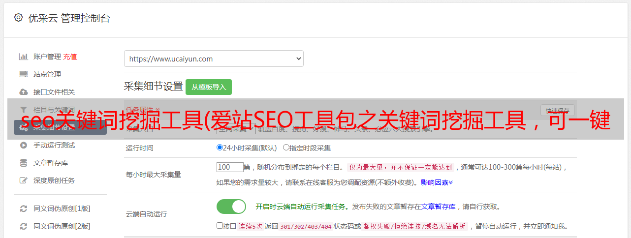 2. 关键词 查询设置:可以查看关键词挖矿源,根据需要设置采集时间间隔(采集时间间隔太短或线程设置会议有被搜索引擎屏蔽的风险,所以建议保持默认设置)。