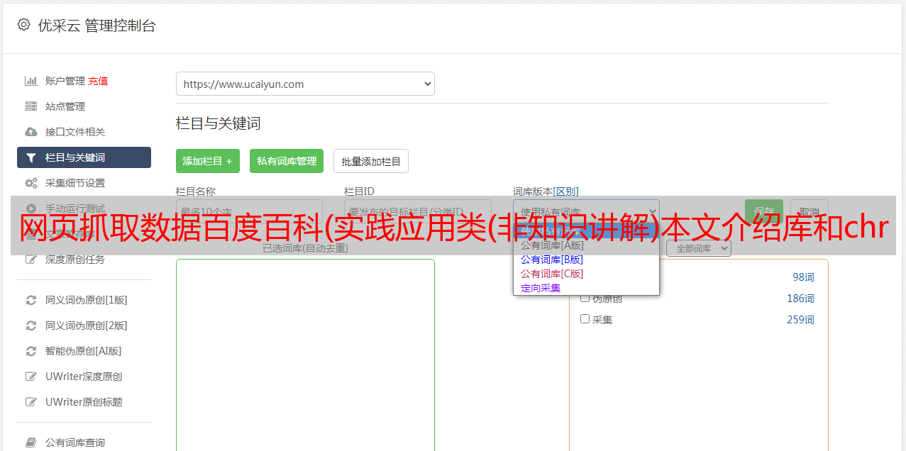优采云 发布时间: 2021-11-10 14:14网页抓取数据百度百科(实践应用类(非知识讲解)本文介绍库和chrome浏览器)