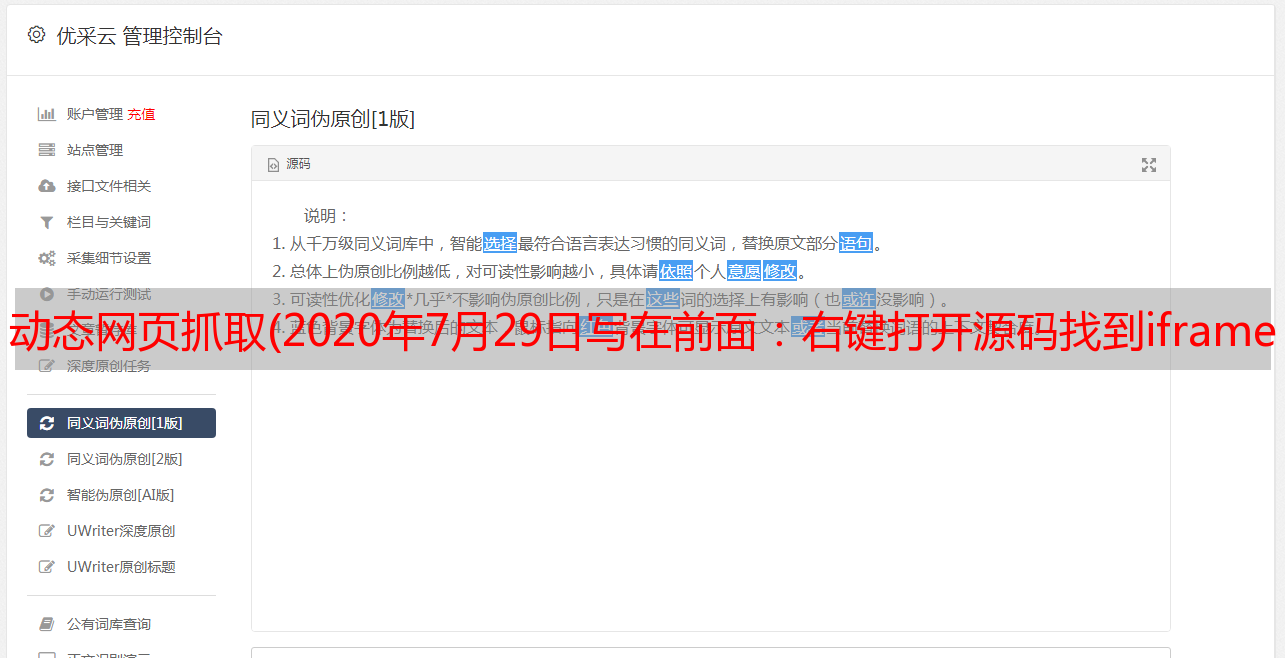 优采云 发布时间: 2021-11-10 15:07动态网页抓取(2020年7月29日写在前面:右键打开源码找到iframe标签