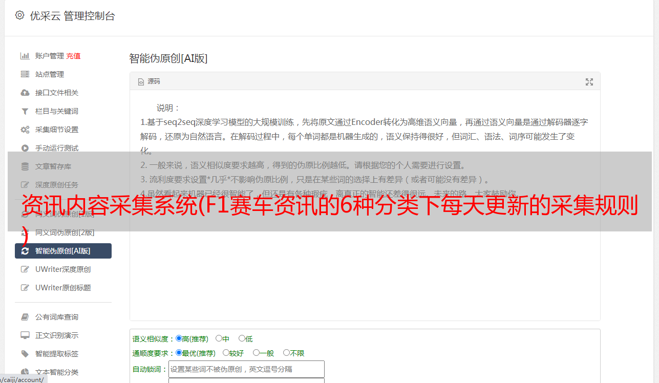 资讯内容采集系统(F1赛车资讯的6种分类下每天更新的采集规则 )