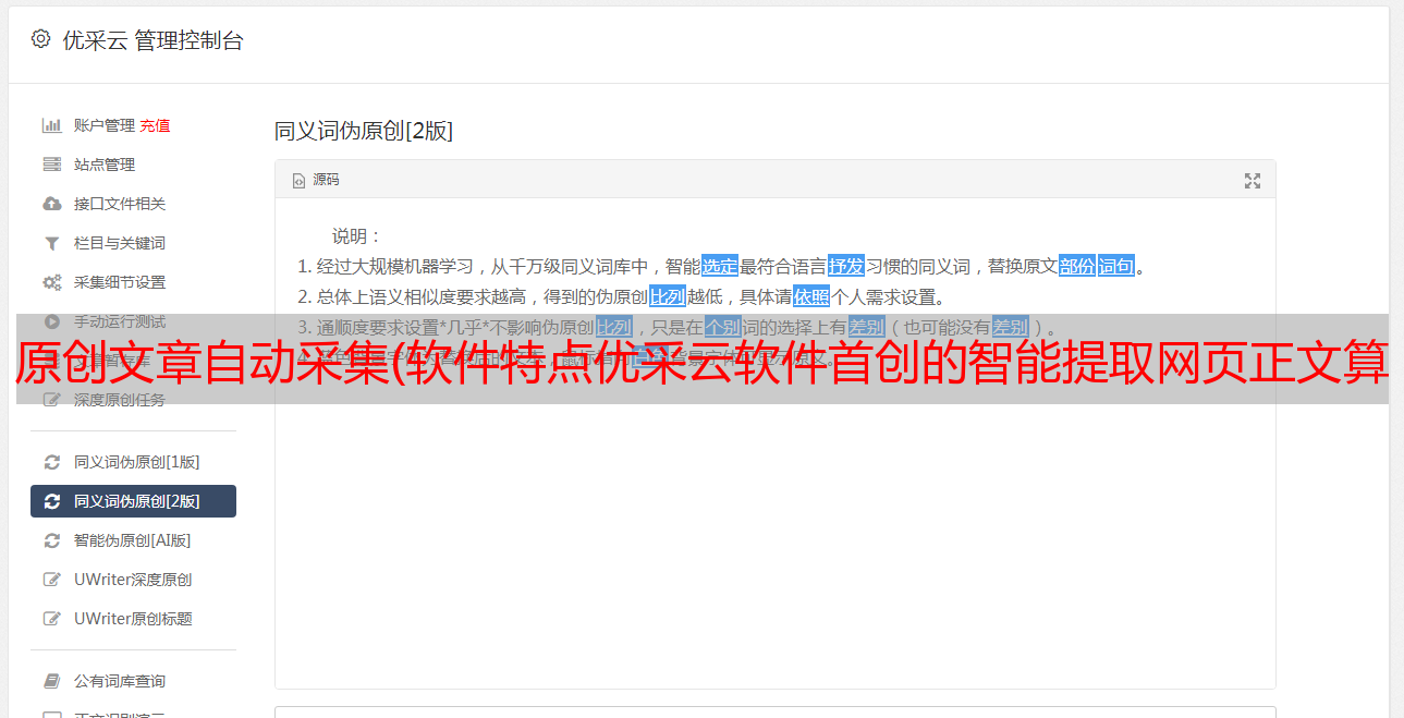 1、按关键词采集互联网文章翻译伪原创,站长朋友首选。