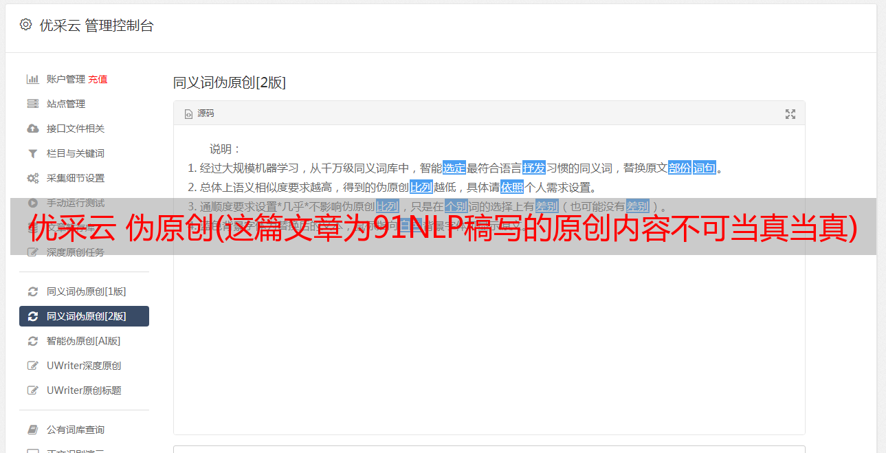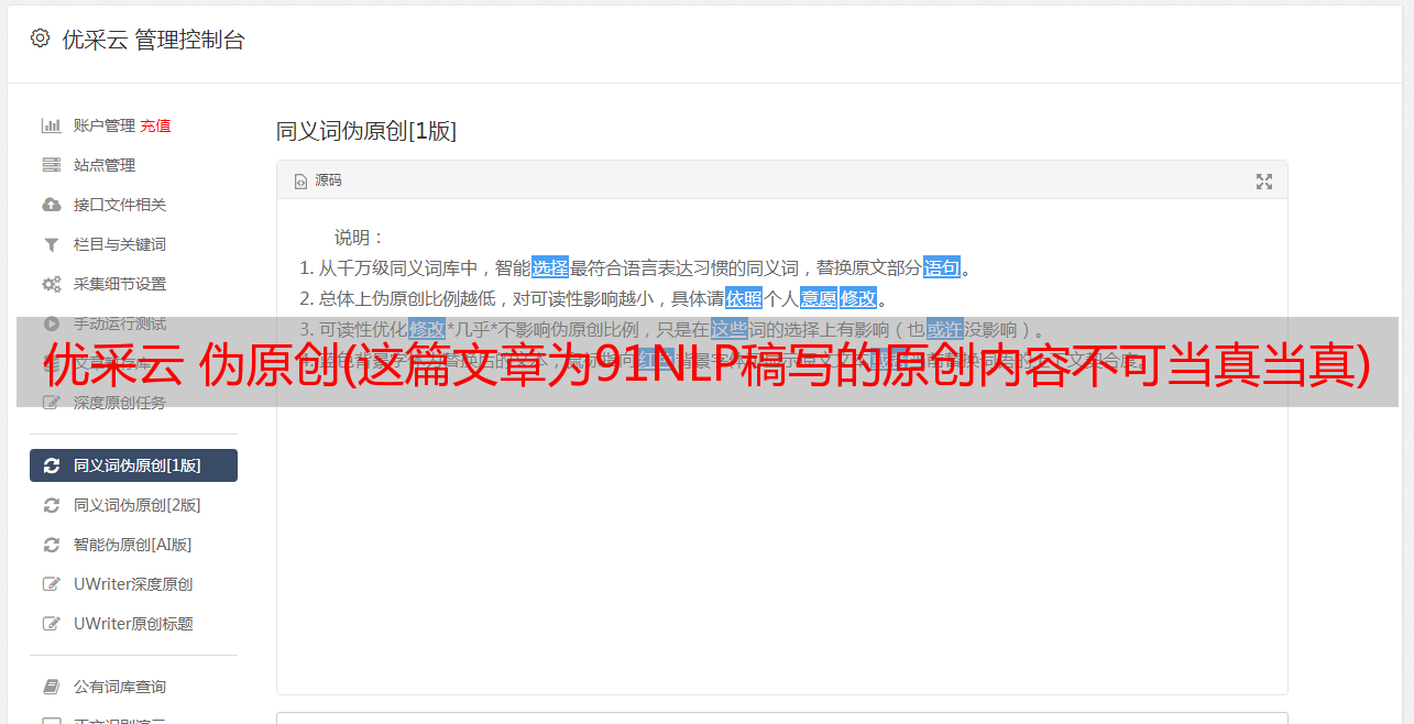 优采云 伪原创(这篇文章为91NLP稿写的原创内容不可当真当真)