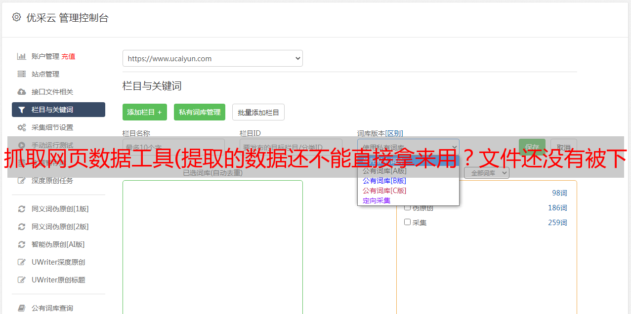 网页抓取工具优采云采集器配备了一系列数据处理的优势在于,当我们只需要做一个小操作时,无需编写插件、生成和编译它们,并且可以一键将数据处理成我们需要的数据。