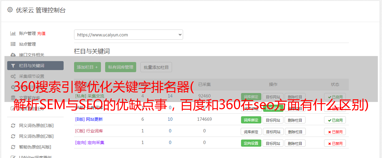 优采云 发布时间: 2021-11-11 09:16360搜索引擎优化关键字排名器(