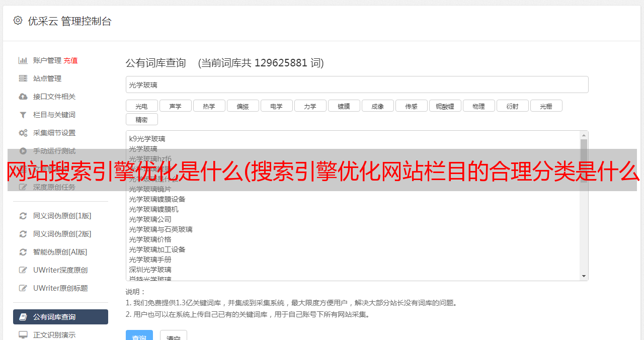优采云 发布时间: 2021-11-11 11:12网站搜索引擎优化是什么(搜索引擎优化网站栏目的合理分类是什么?(图))