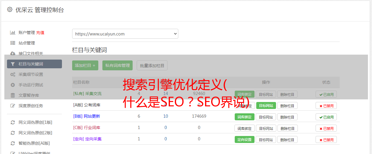 优采云 发布时间: 2021-11-11 18:16搜索引擎优化定义(