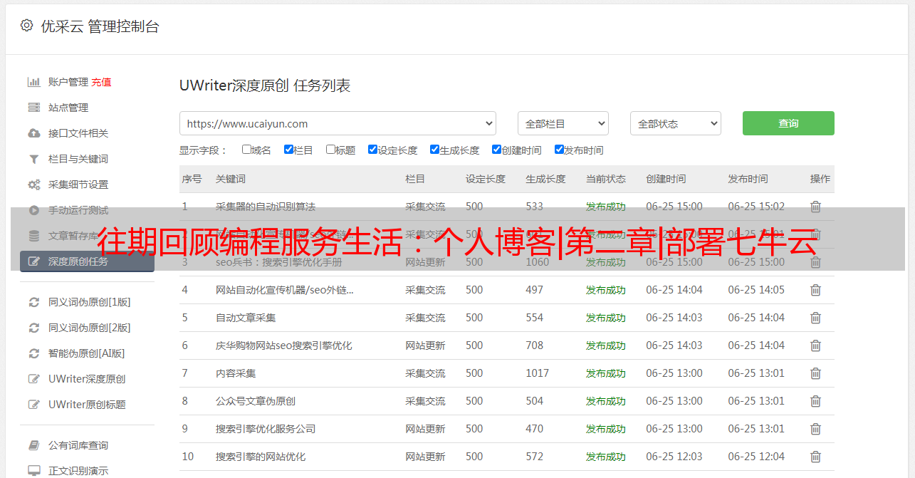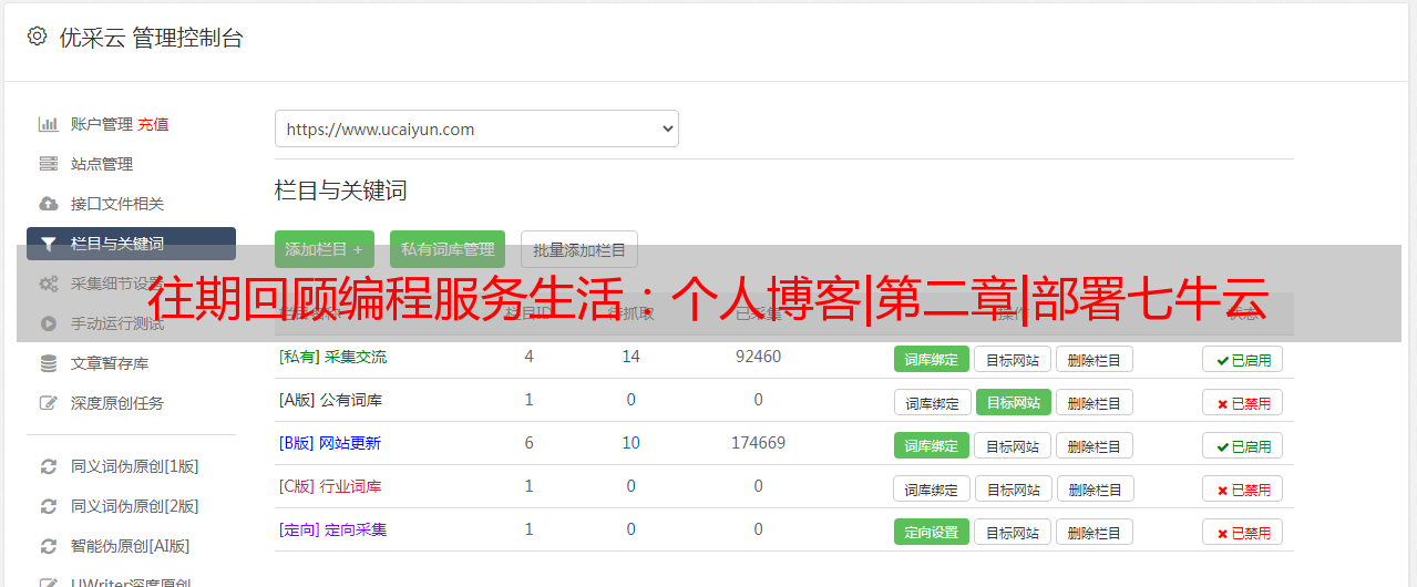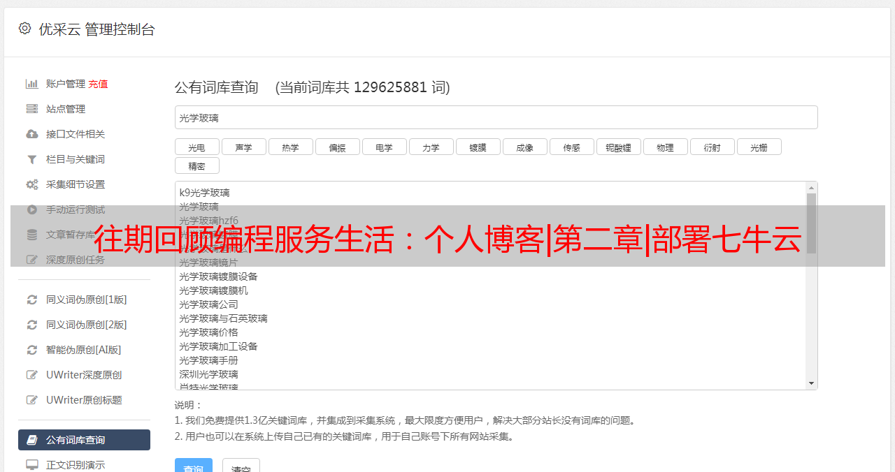 优采云 发布时间: 2021-03-28 01:09往期回顾编程服务生活:个人博客|第二章|部署七牛云