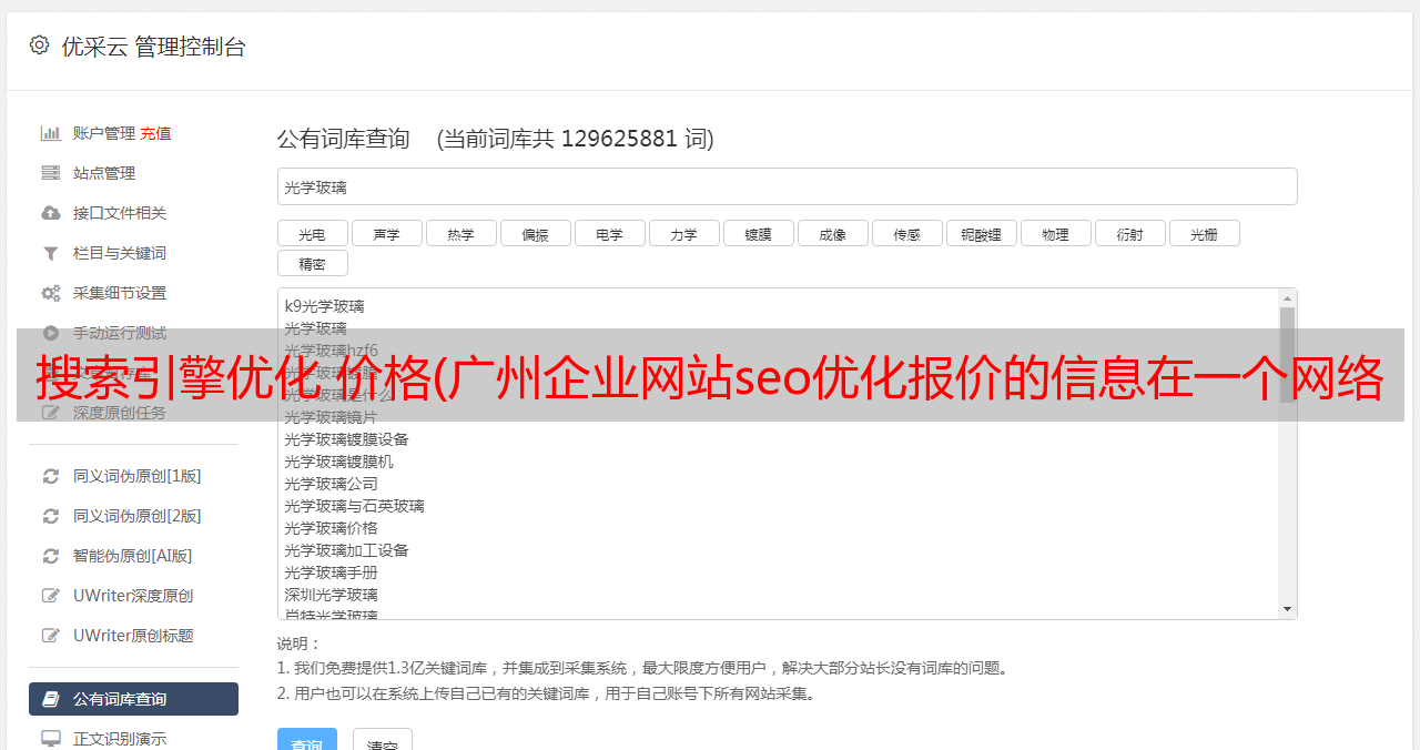 优采云 发布时间: 2021-11-12 13:09搜索引擎优化 价格(广州企业网站seo优化报价的信息在一个网络世界中)