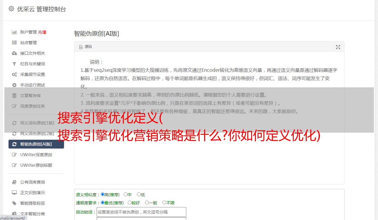 优采云 发布时间: 2021-11-13 00:04搜索引擎优化定义(