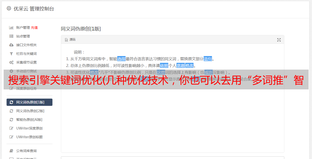 优采云 发布时间: 2021-11-13 01:16搜索引擎关键词优化(几种优化技术,你也可以去用“多词推”智能优化)