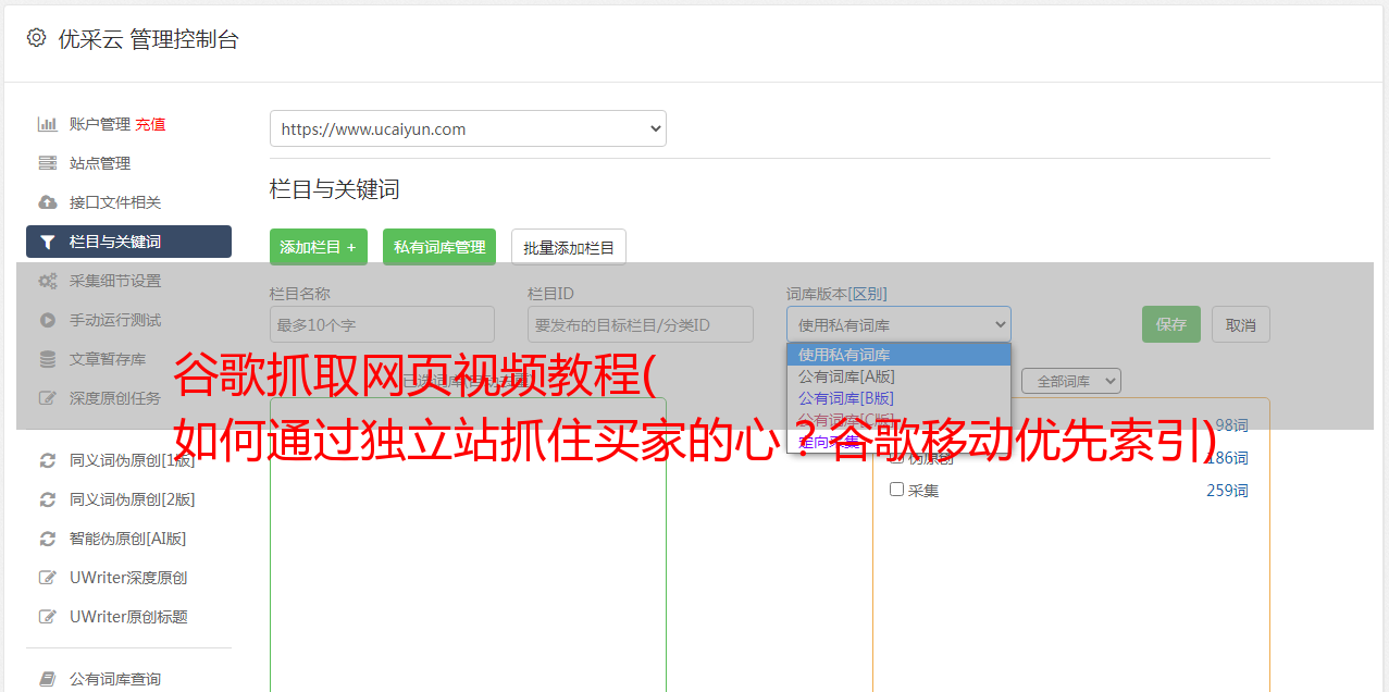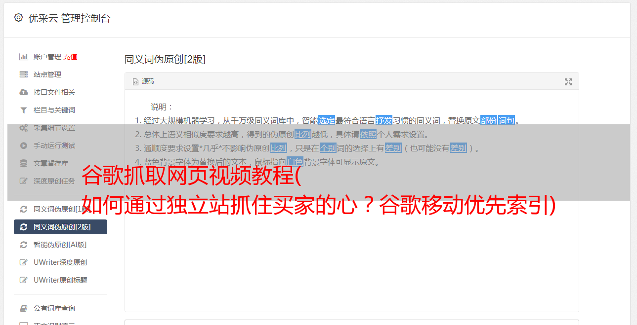 优采云 发布时间: 2021-11-13 08:12谷歌抓取网页视频教程(