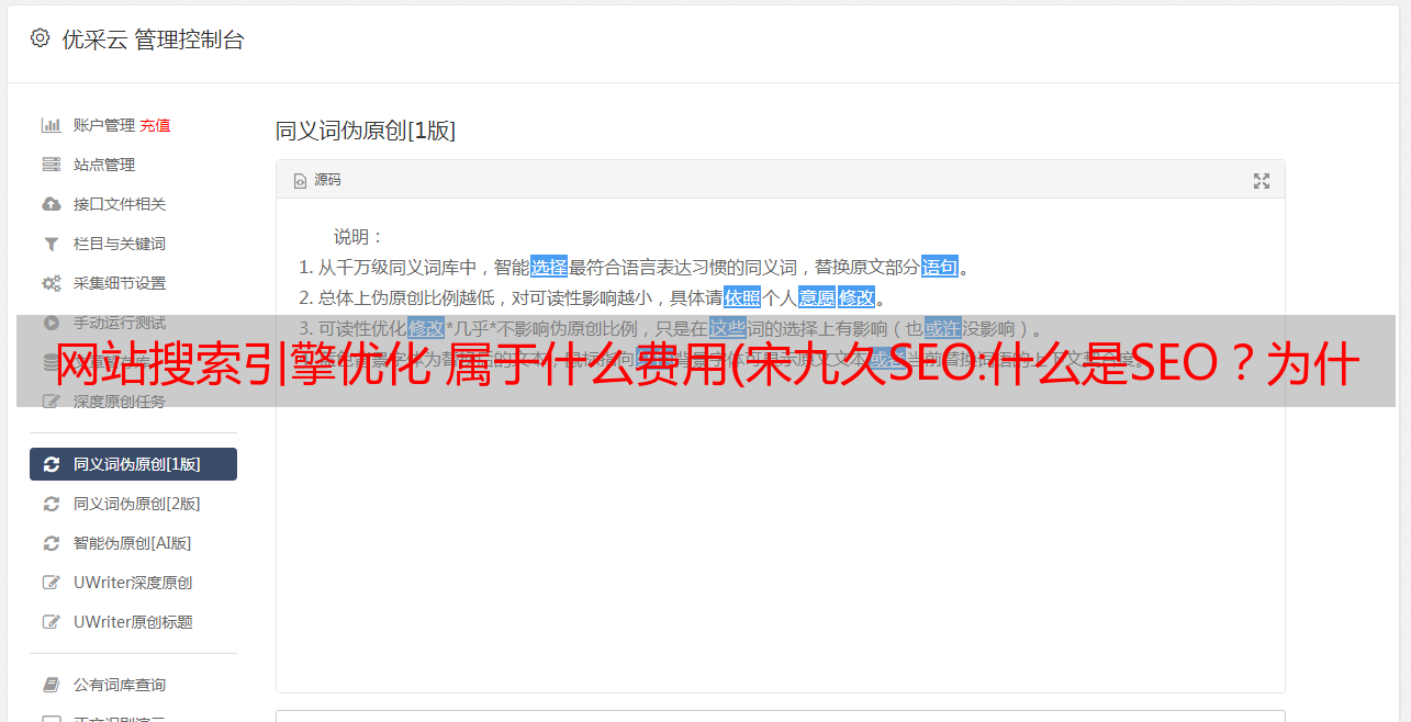 优采云 发布时间: 2021-11-13 13:04网站搜索引擎优化 属于什么费用(宋九久SEO:什么是SEO?为什么企业或个人做seo网站优化)