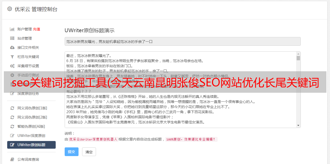 优采云 发布时间: 2021-11-14 04:03seo关键词挖掘工具(今天云南昆明张俊SEO网站优化长尾关键词挖掘工具推荐给大家)