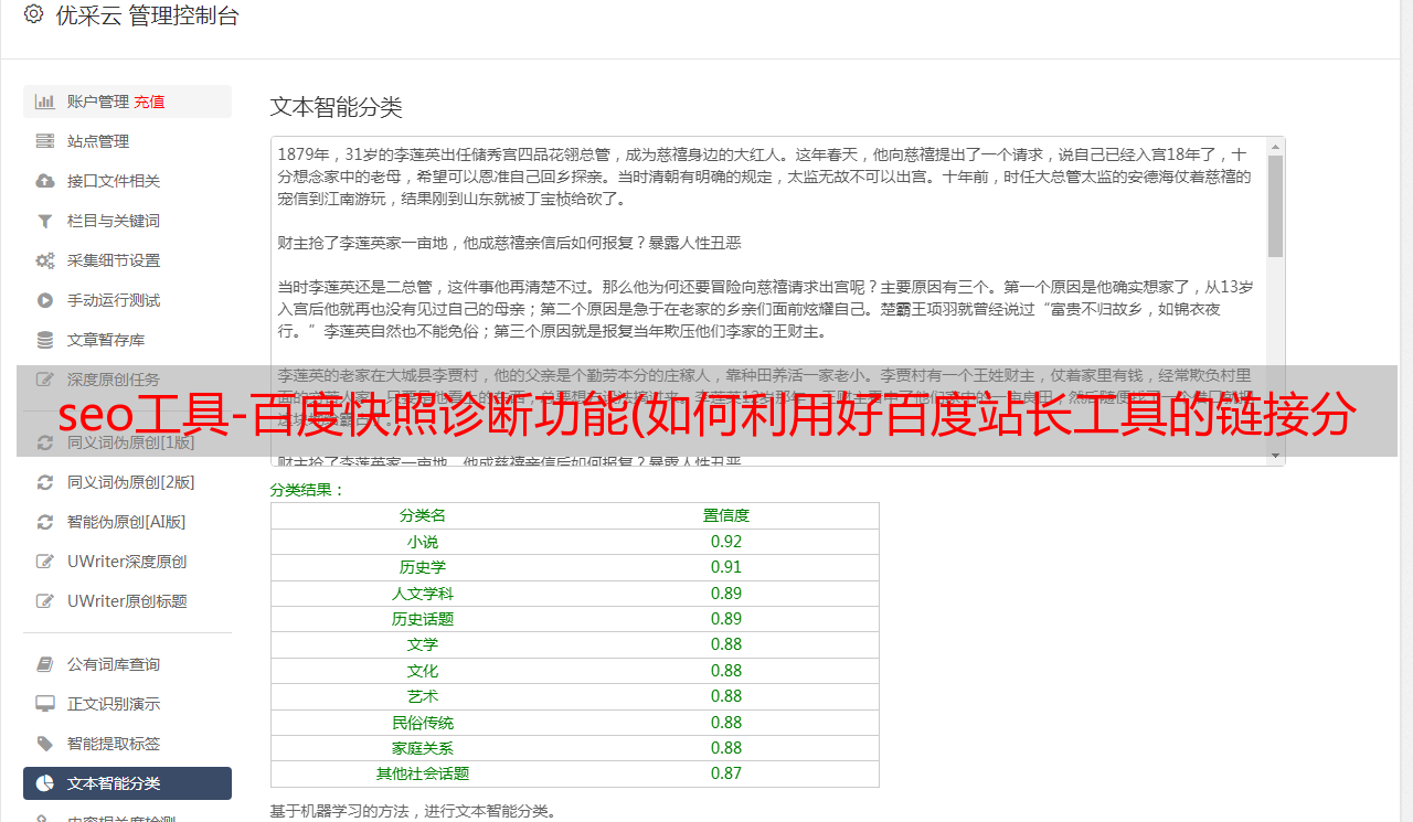 优采云 发布时间: 2021-11-14 05:05seo工具-百度快照诊断功能(如何利用好百度站长工具的链接分析功能,来定位网站可能存在的SEO问题)