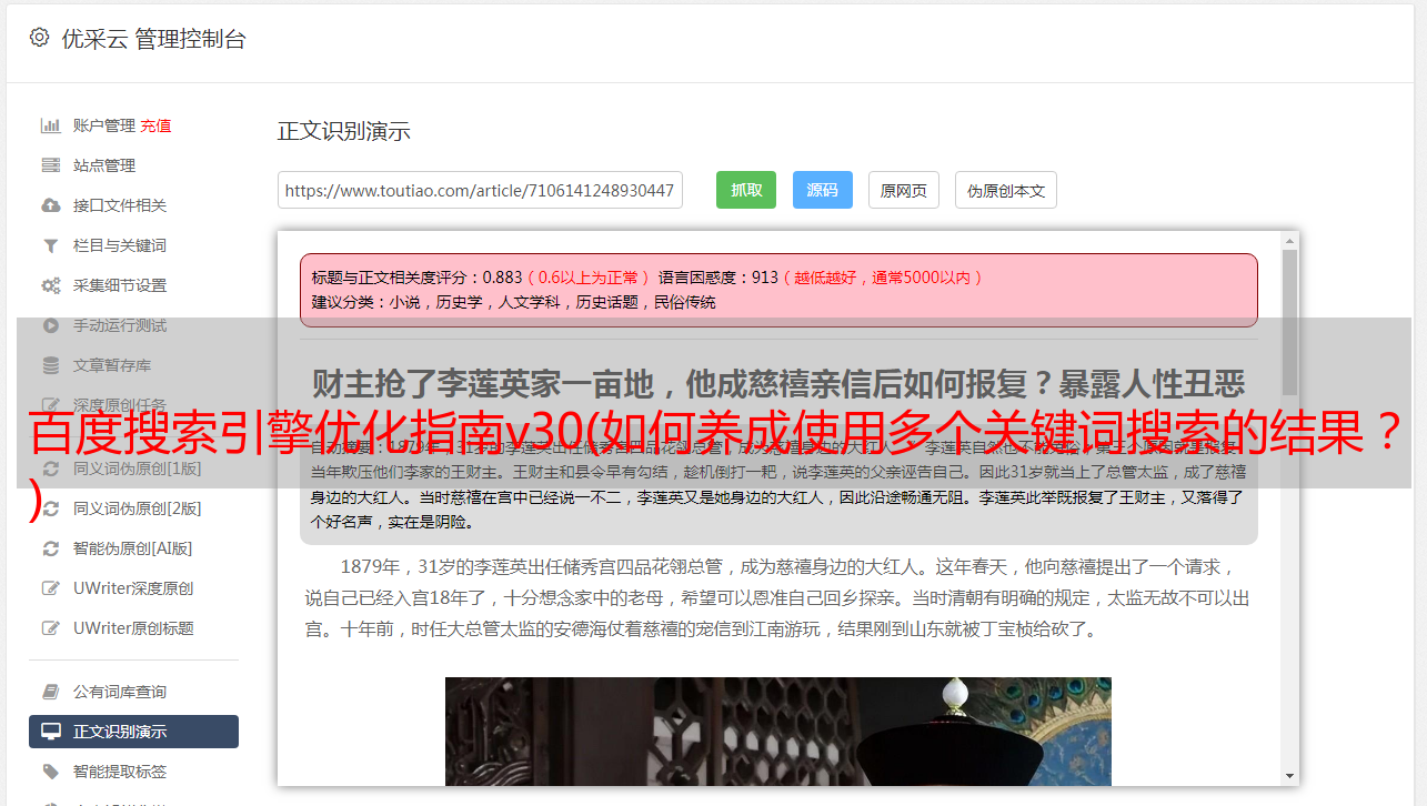 优采云 发布时间: 2021-11-14 09:10百度搜索引擎优化指南v30(如何养成使用多个关键词搜索的结果?