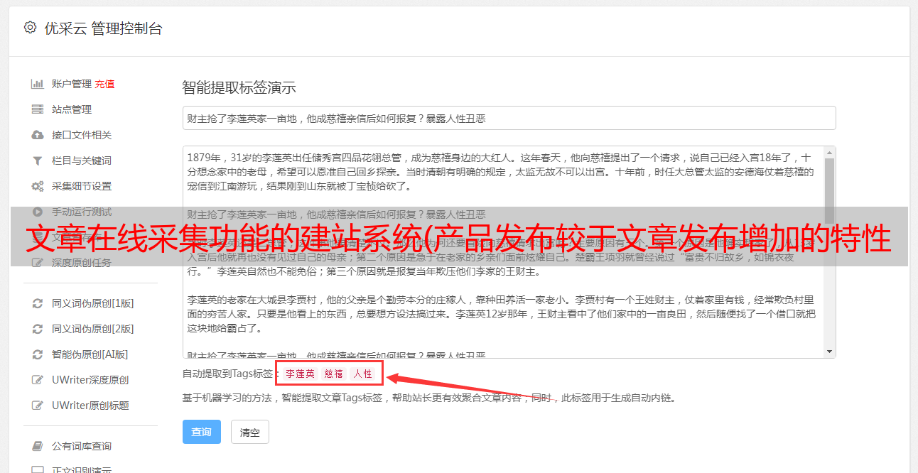 文章在线采集功能的建站系统(产品发布较于文章发布增加的特性展示图片:产品和图片模型)