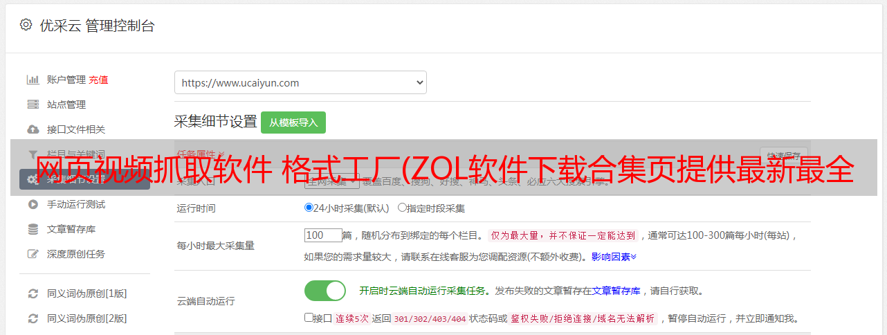 优采云 发布时间: 2021-11-14 10:11网页视频抓取软件 格式工厂(ZOL软件下载合集页提供最新最全的网页视频下载软件)