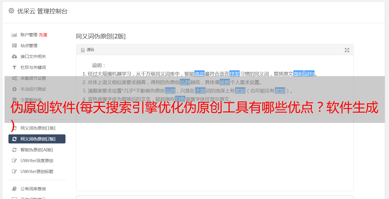 优采云 发布时间: 2021-11-14 16:14伪原创软件(每天搜索引擎优化伪原创工具有哪些优点?软件生成