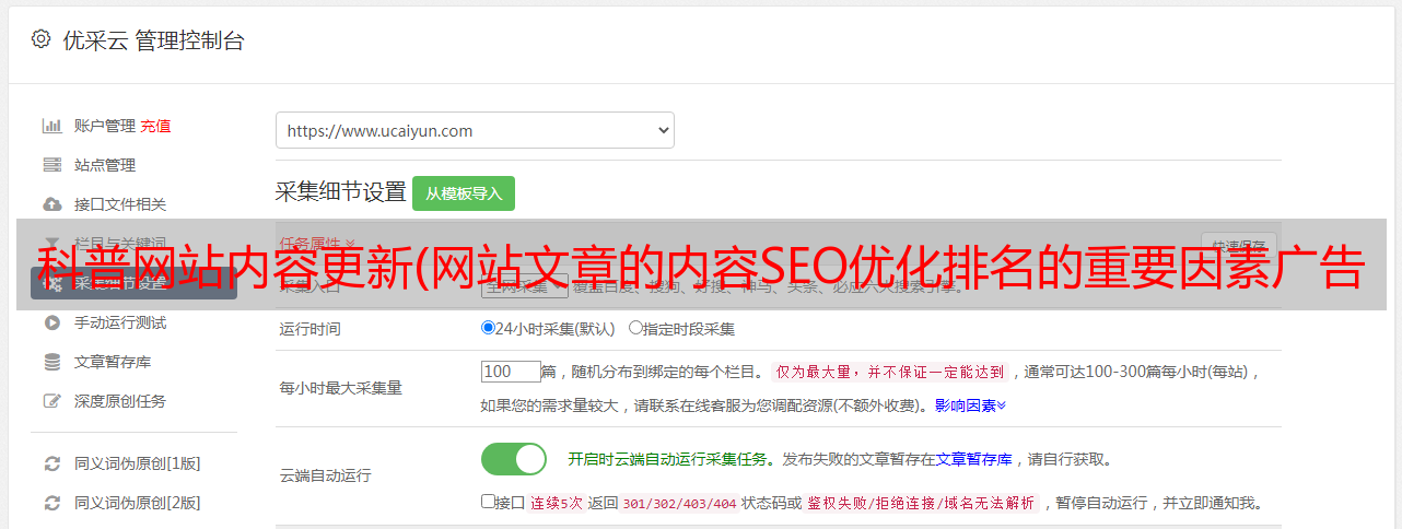 优采云 发布时间: 2021-11-15 16:13科普网站内容更新(网站文章的内容SEO优化排名的重要因素广告传媒)