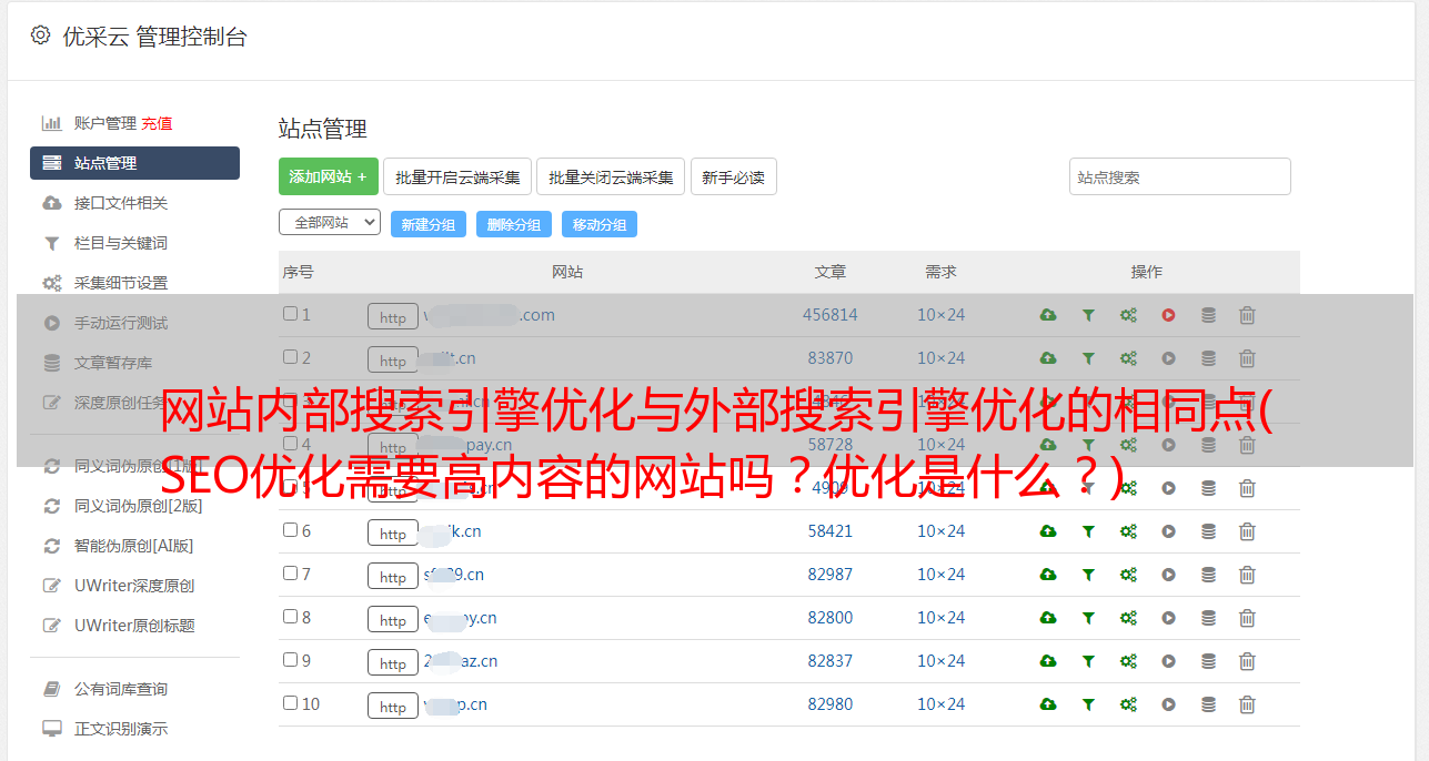 优采云 发布时间: 2021-11-15 17:15网站内部搜索引擎优化与外部搜索引擎优化的相同点(