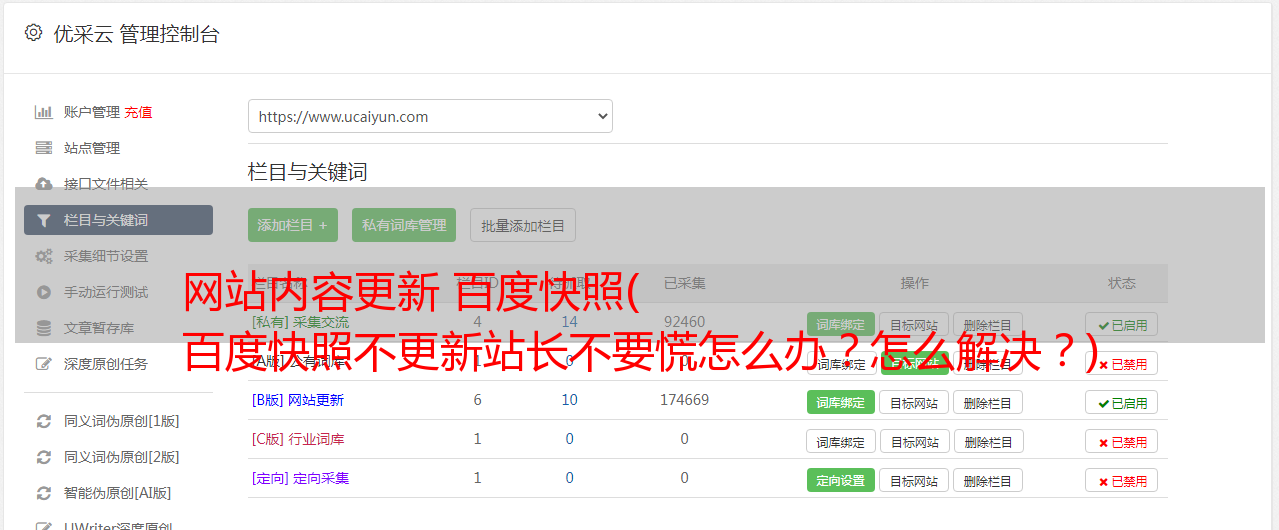 优采云 发布时间: 2021-11-15 19:13网站内容更新 百度快照(