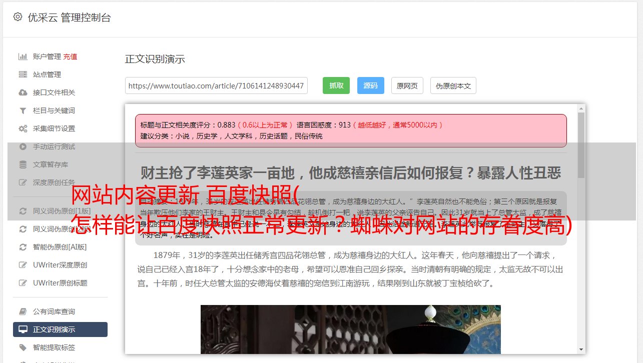 网站内容更新 百度快照( 怎样能让百度快照正常更新?蜘蛛对网站的存眷度高)