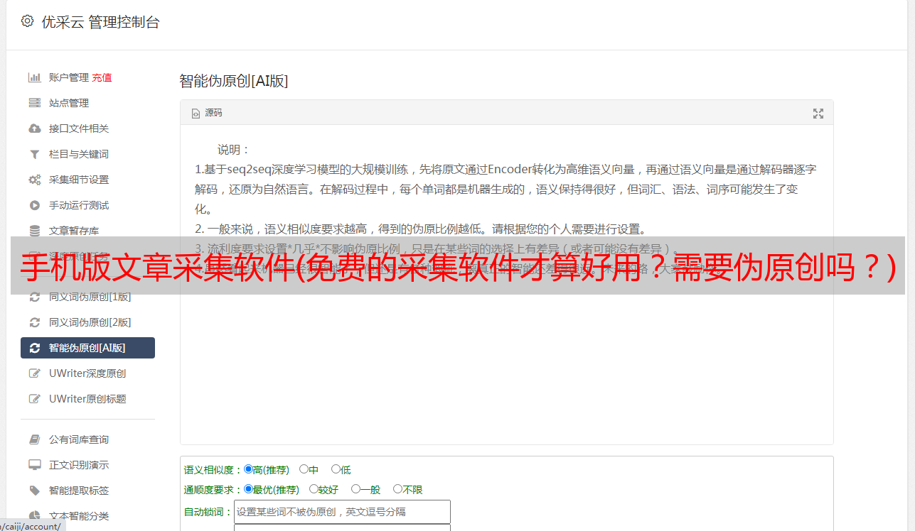 优采云 发布时间: 2021-11-16 12:08手机版文章采集软件(免费的采集软件才算好用?需要伪原创吗?)