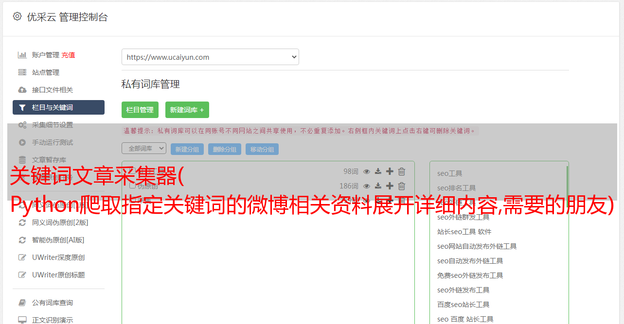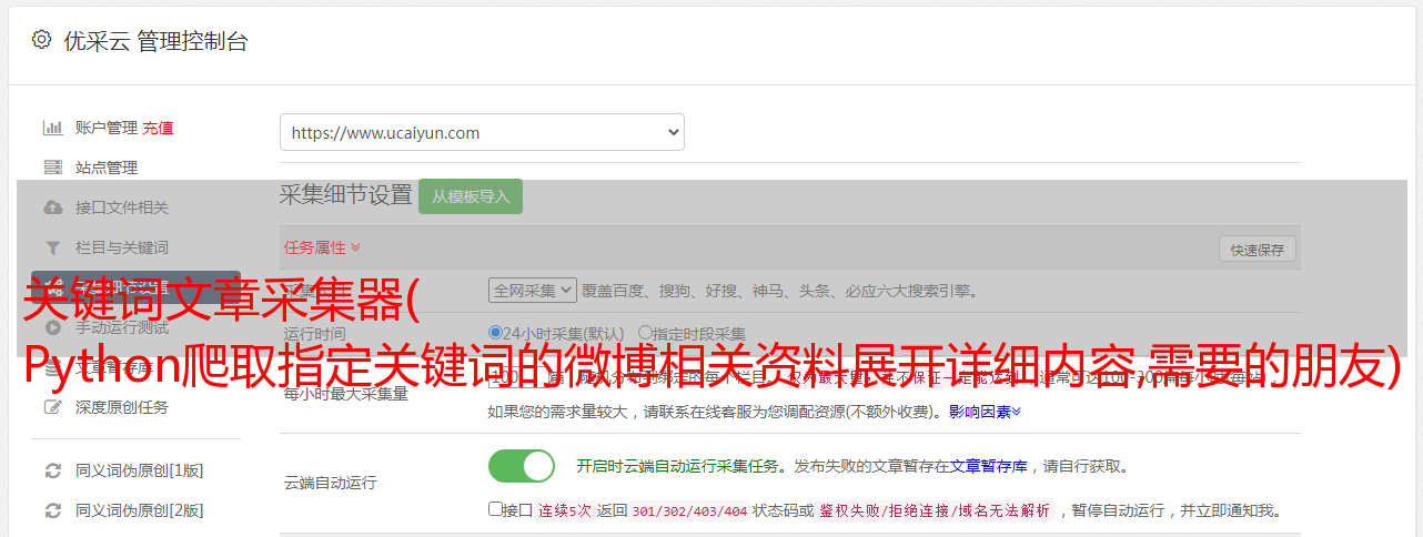 优采云 发布时间: 2021-11-16 14:08Python爬取指定关键词的微博相关资料展开详细内容,需要的朋友)