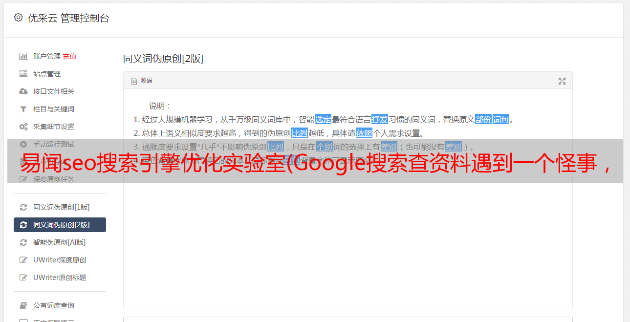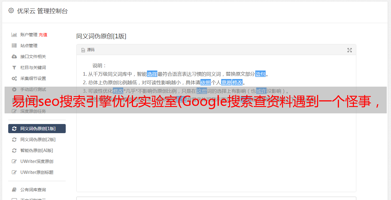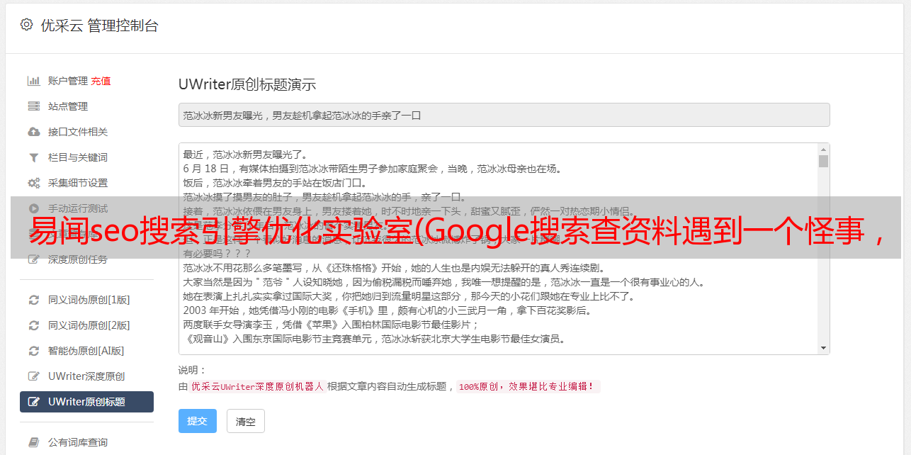 优采云 发布时间: 2021-11-16 14:18易闻seo搜索引擎优化实验室(Google搜索查资料遇到一个怪事,你知道自己把事情闹大了吗?