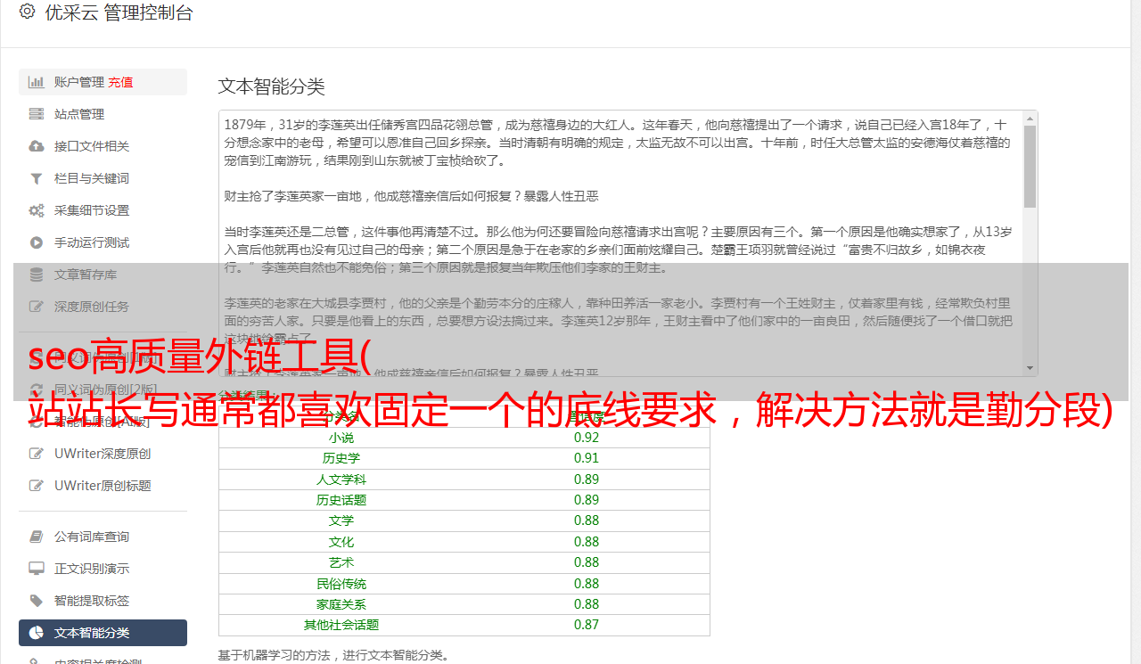 seo高质量外链工具( 站站长写通常都喜欢固定一个的底线要求,解决方法就是勤分段)