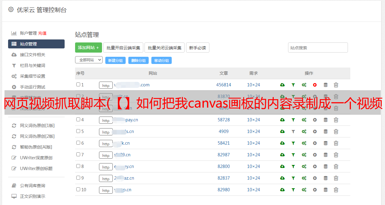 优采云 发布时间: 2021-11-17 17:08网页视频抓取脚本(【】如何把我canvas画板的内容录制成一个视频