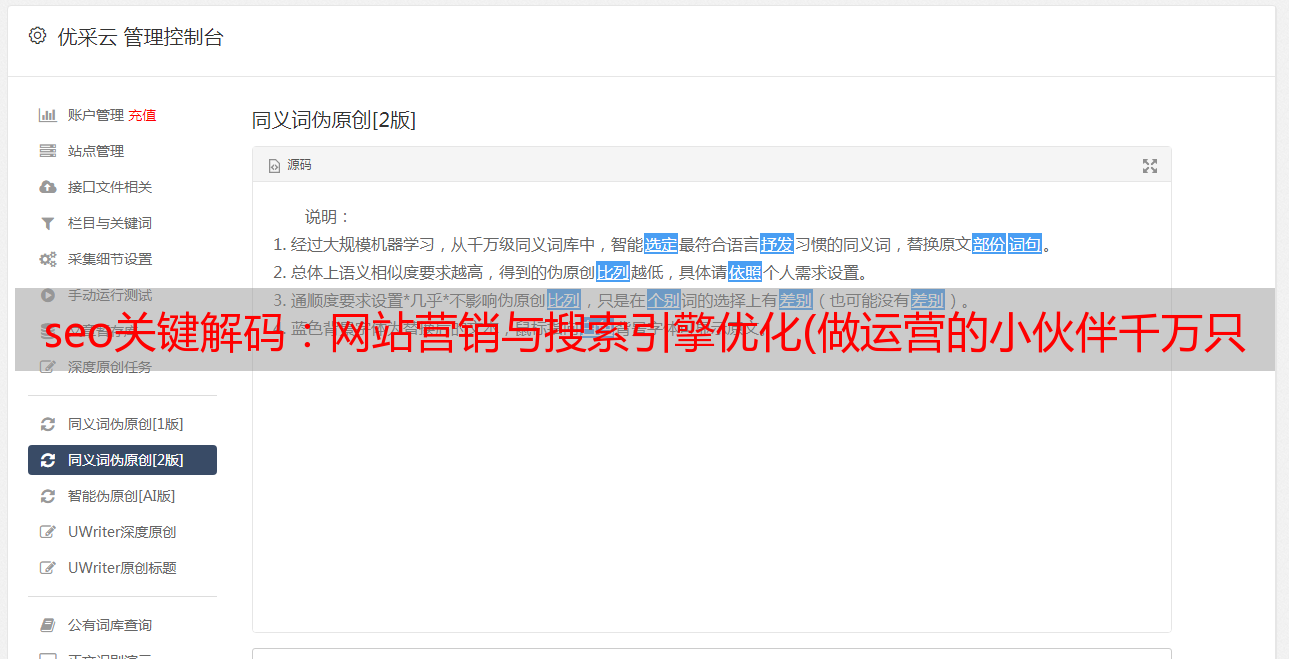 优采云 发布时间: 2021-11-18 06:02seo关键解码:网站营销与搜索引擎优化(做运营的小伙伴千万只顾其一,考虑如何重构网站内容)