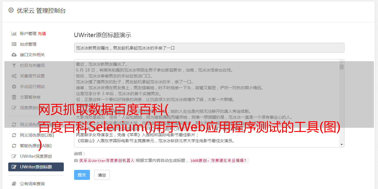 网页抓取数据百度百科( 百度百科Selenium()用于Web应用程序测试的工具(图) )