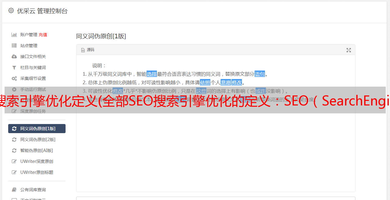 优采云 发布时间: 2021-11-18 10:13搜索引擎优化定义(全部SEO搜索引擎优化的定义:SEO(SearchEngineOptimization))