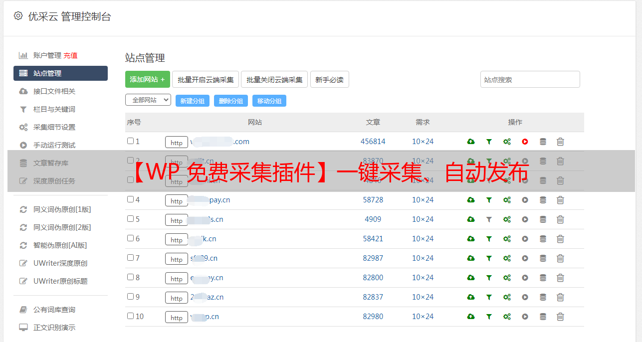 一键爬取微信公众号、知乎、优酷、微博等海量网站数据,并手动发布到网站。