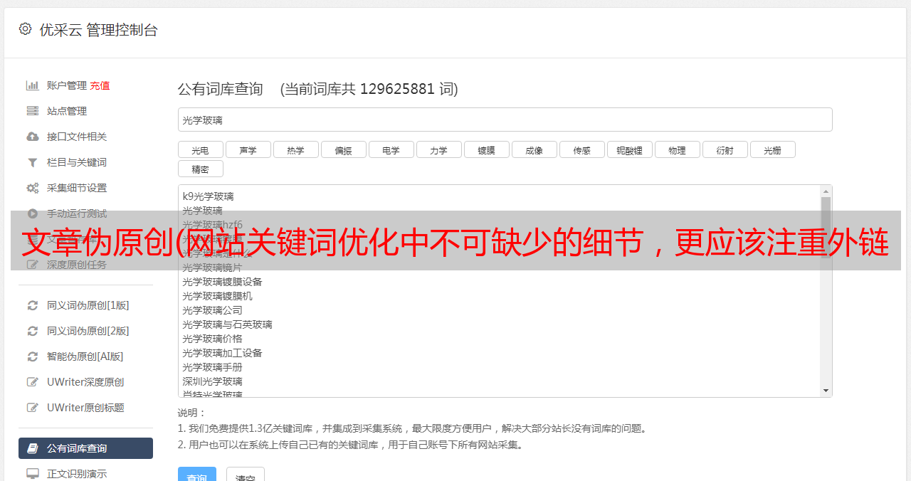优采云 发布时间: 2021-11-19 05:15文章伪原创(网站关键词优化中不可缺少的细节,更应该注重外链的优化)