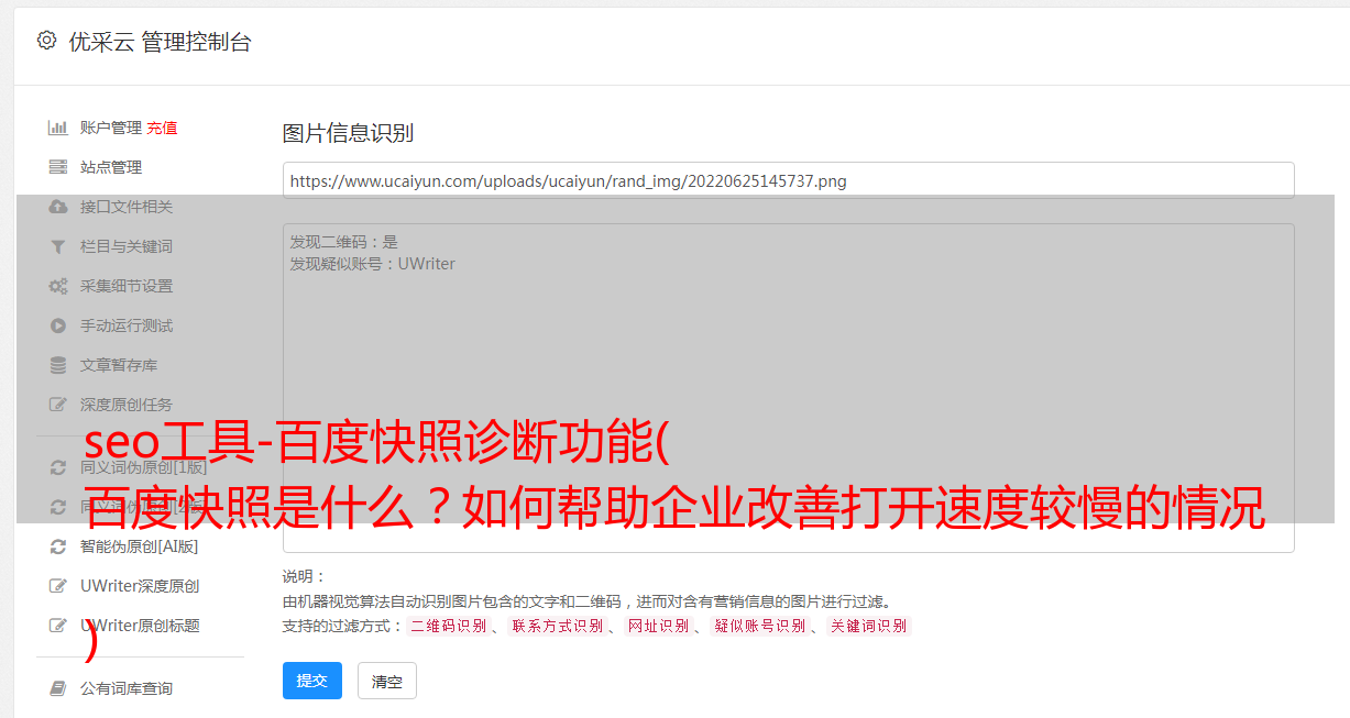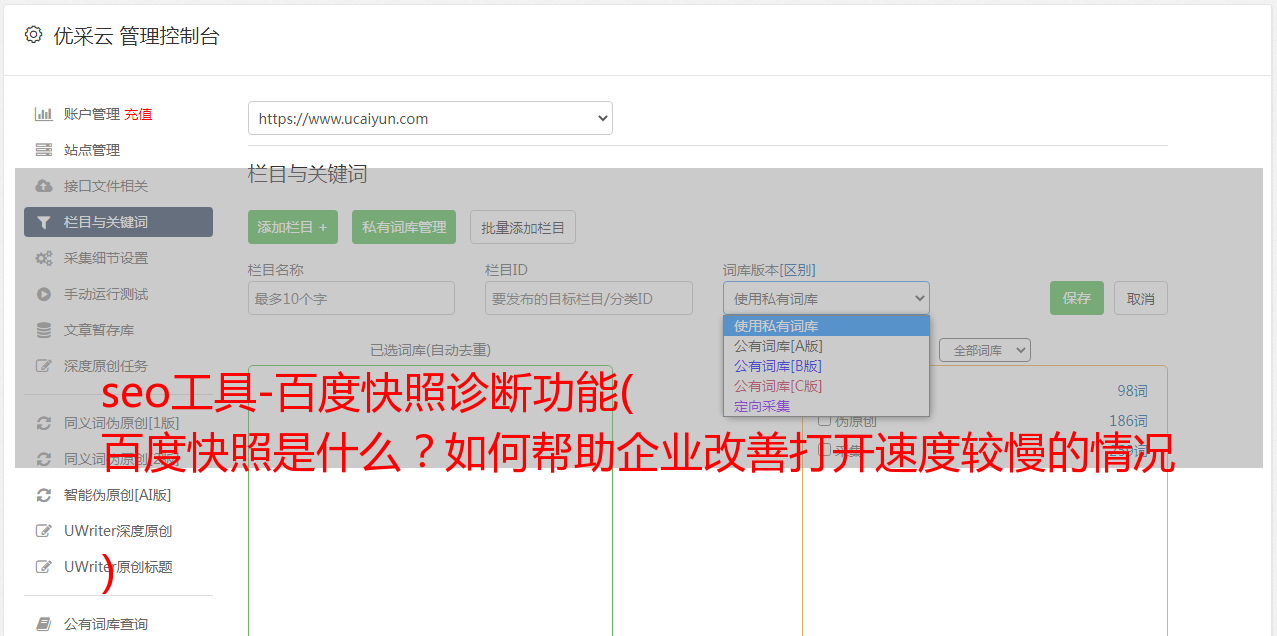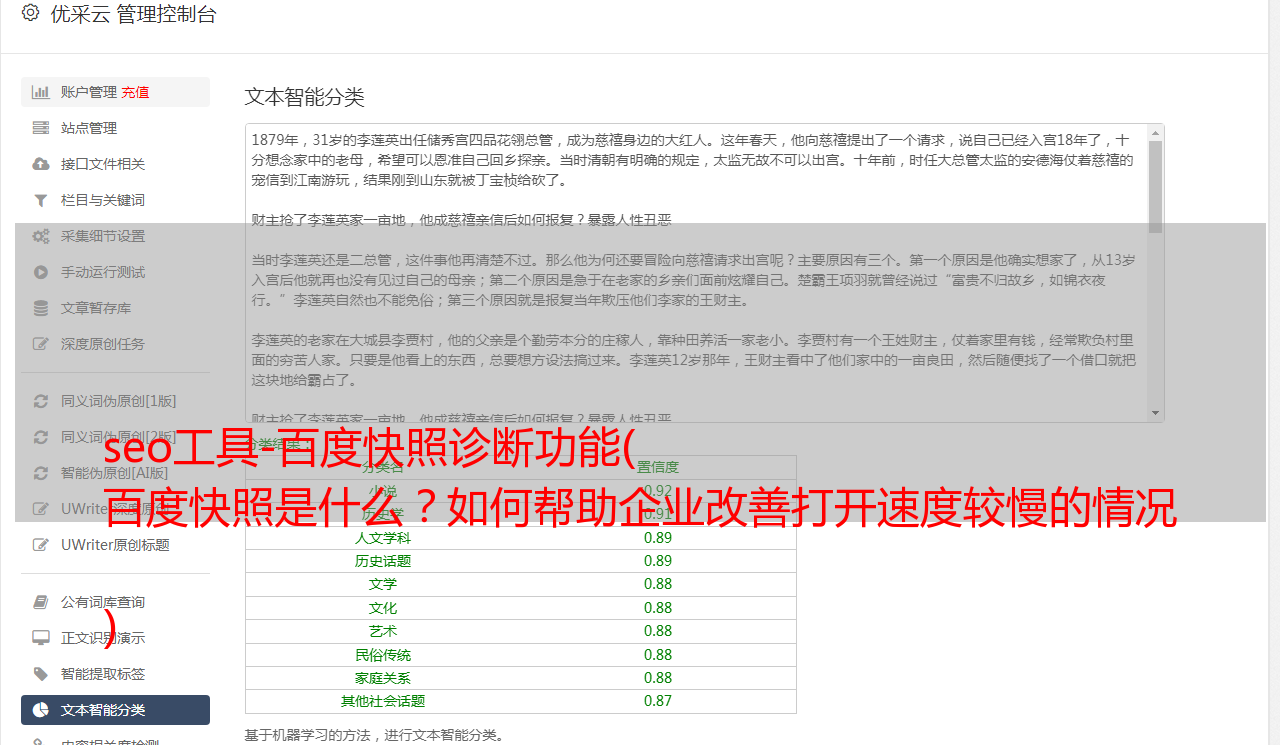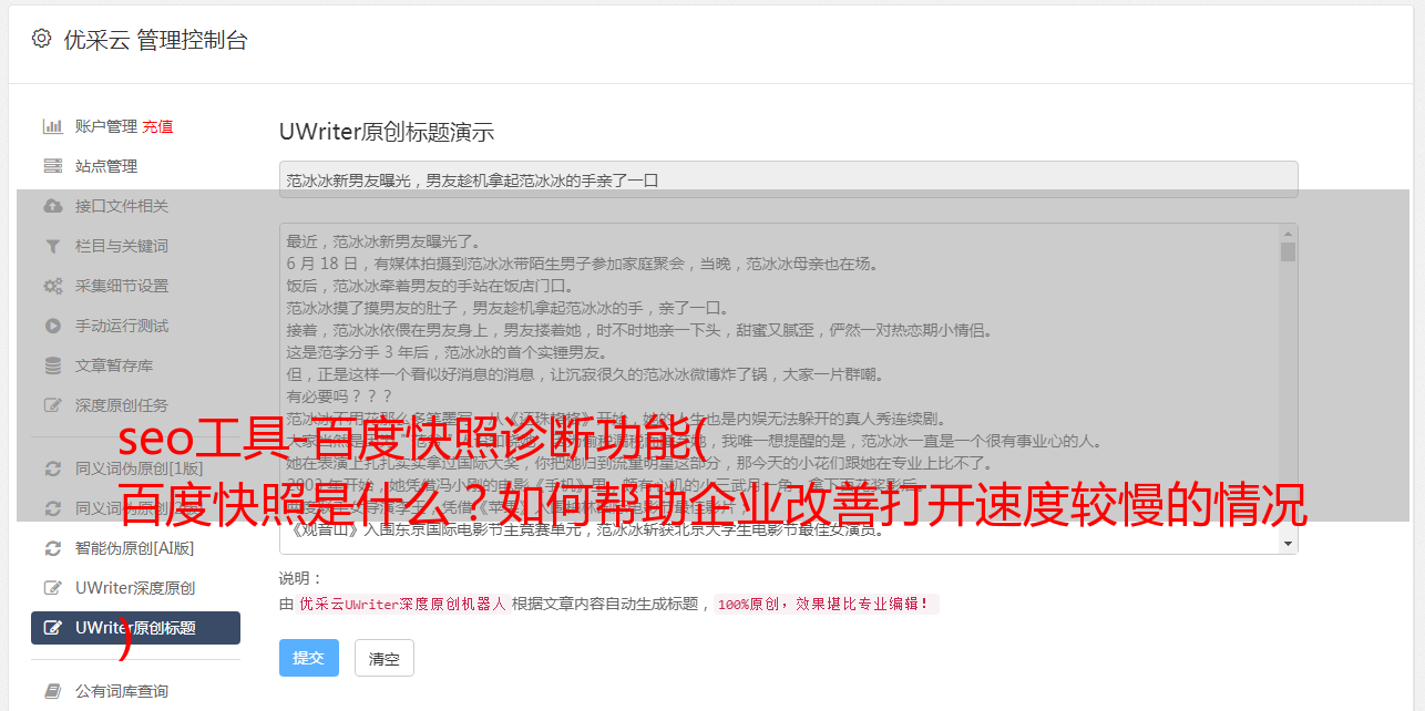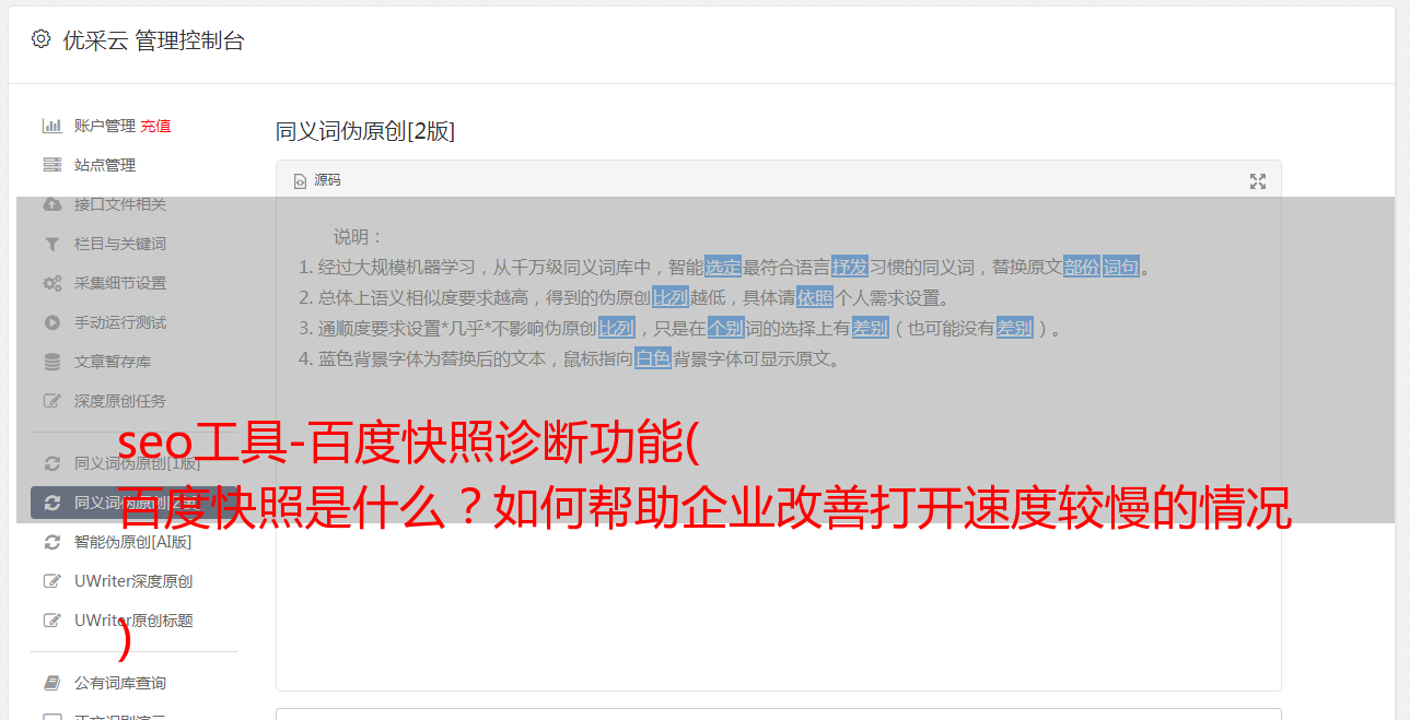 优采云 发布时间: 2021-11-19 06:23seo工具-百度快照诊断功能(
