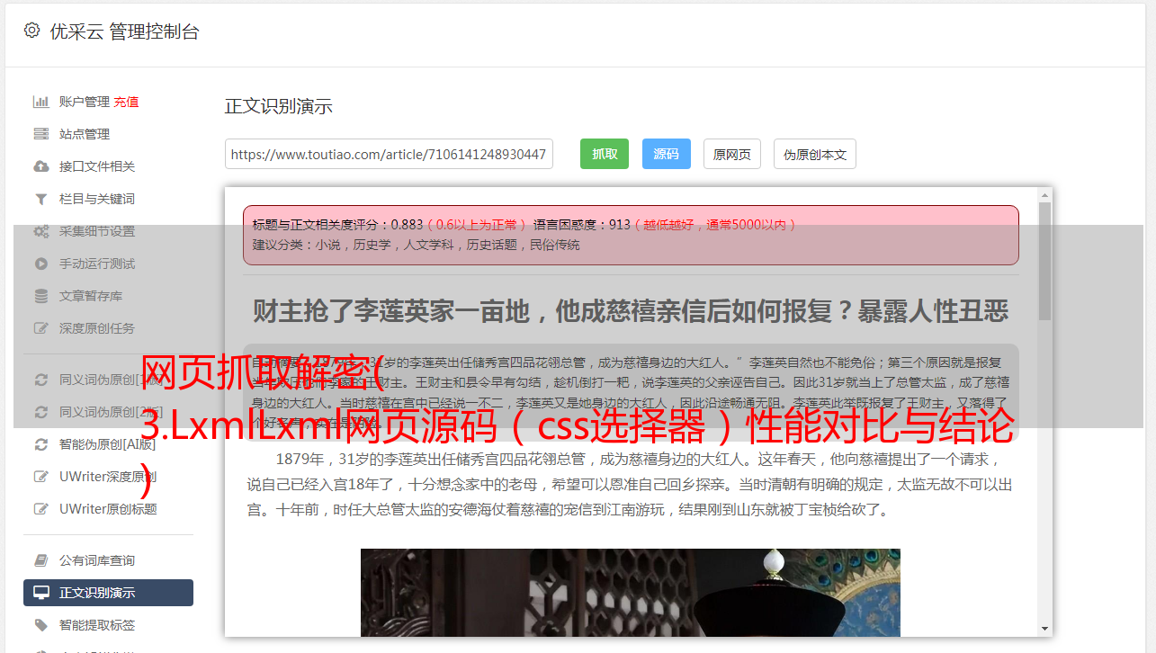 网页抓取解密( 3.LxmlLxml网页源码(css选择器)性能对比与结论 )