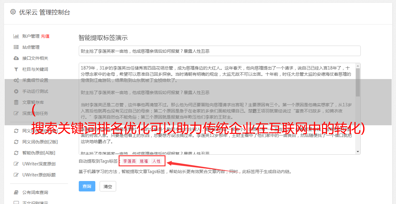 关键词 选择之后,不是放手,而是给他们注入新鲜的血液,最好是用户关注的内容信息点,可以吸引用户的观看和黏附。同时,搜索引擎更喜欢原创的内容,也利用原创的优质内容来提升网站的排名。