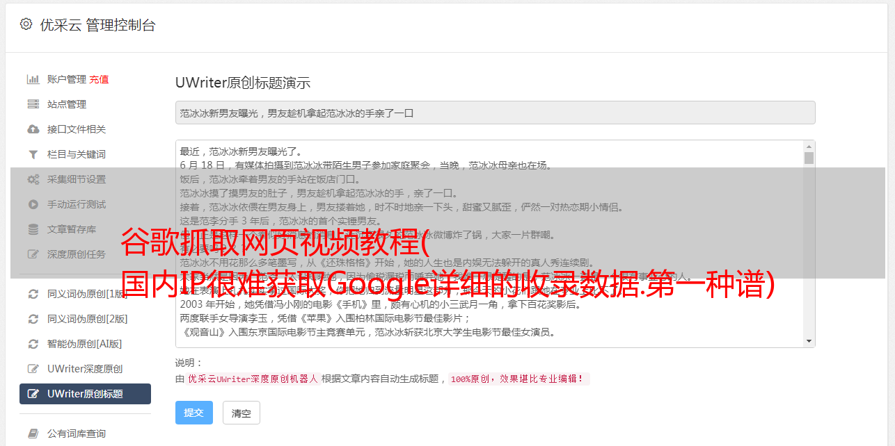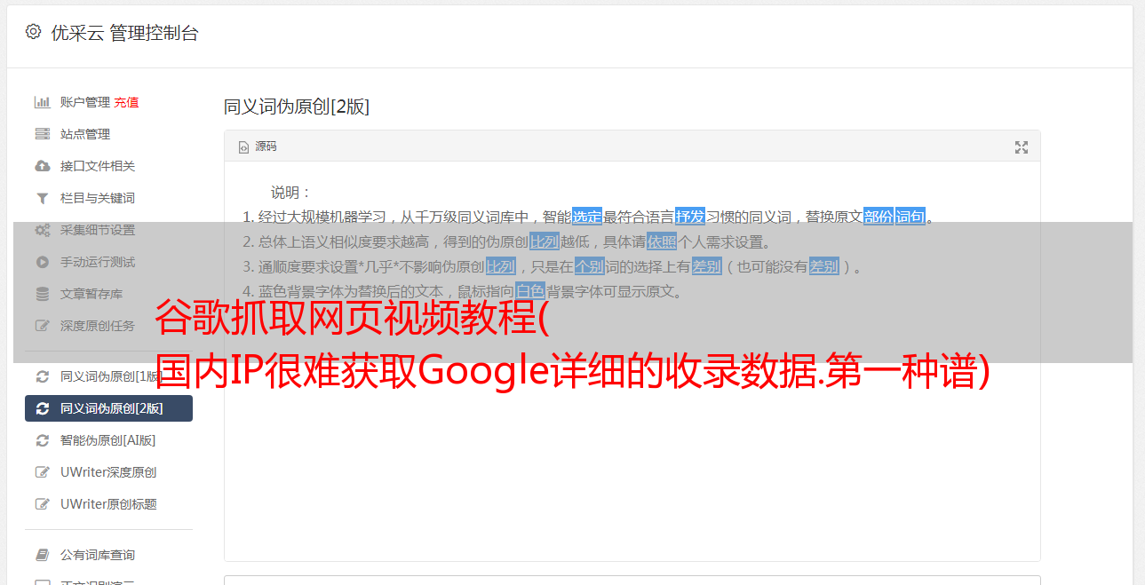 谷歌抓取网页视频教程( 国内IP很难获取Google详细的收录数据.第一种谱)