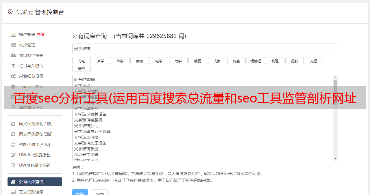 优采云 发布时间: 2021-11-21 13:34百度seo分析工具(运用百度搜索总流量和seo工具监管剖析网址数据信息转变)