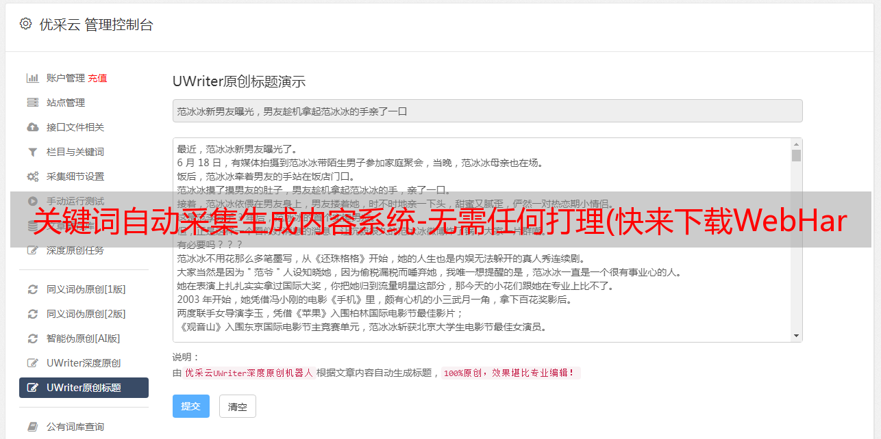 关键词自动采集生成内容系统-无需任何打理(快来下载WebHarvy绿色版来帮助你进行数据采集吧,下载)