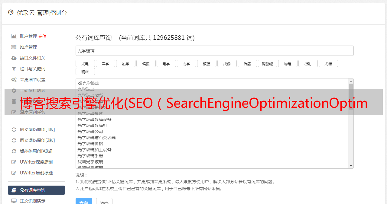 优采云 发布时间: 2021-11-22 10:24博客搜索引擎优化(SEO(SearchEngineOptimizationOptimization):汉译为搜索引擎优化。)
