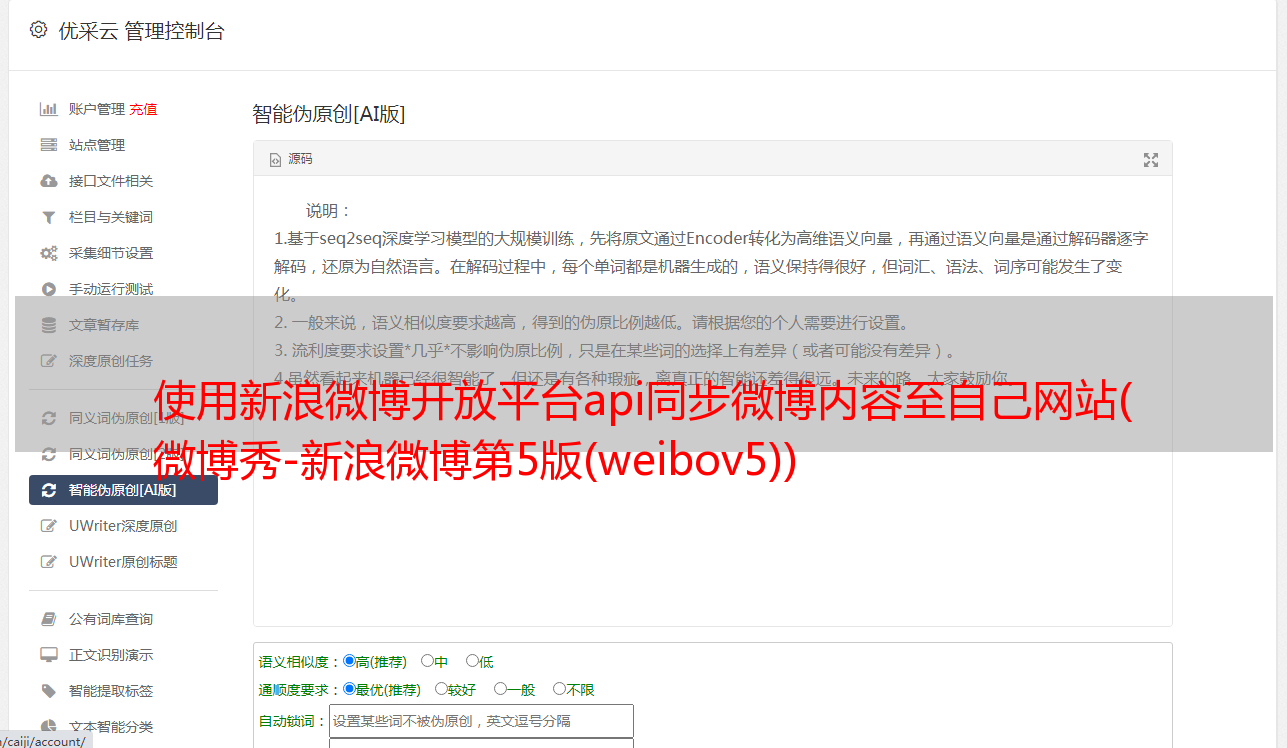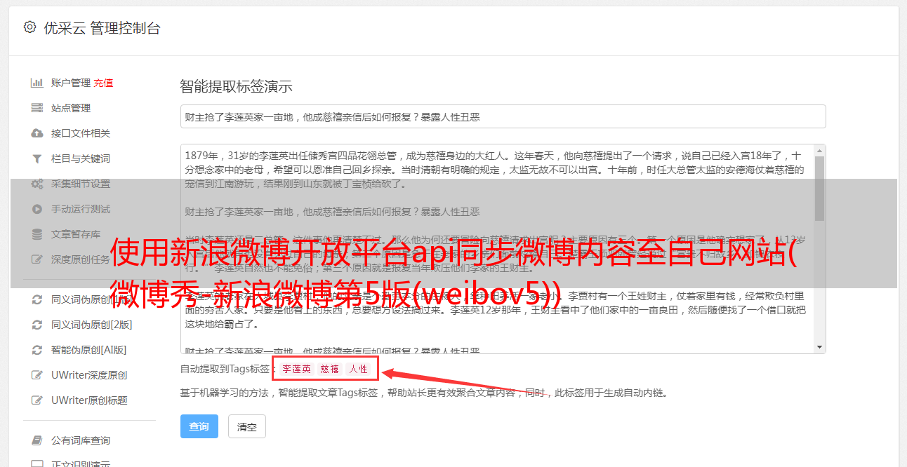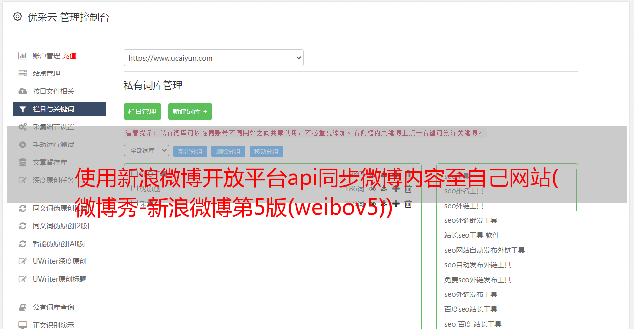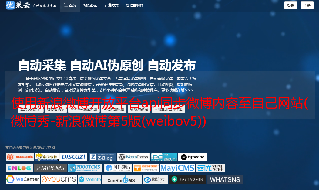 优采云 发布时间: 2021-11-22 11:20使用新浪微博开放平台api同步微博内容至自己网站(