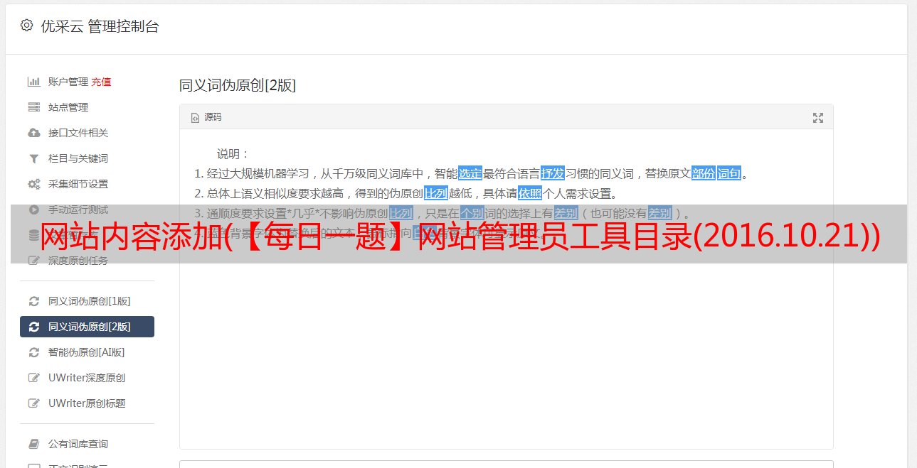 优采云 发布时间: 2021-11-22 13:02网站内容添加(【每日一题】网站管理员工具目录(2016.10.21))