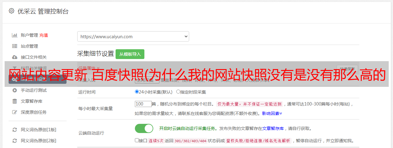 优采云 发布时间: 2021-11-22 20:12网站内容更新 百度快照(为什么我的网站快照没有是没有那么高的原因?)